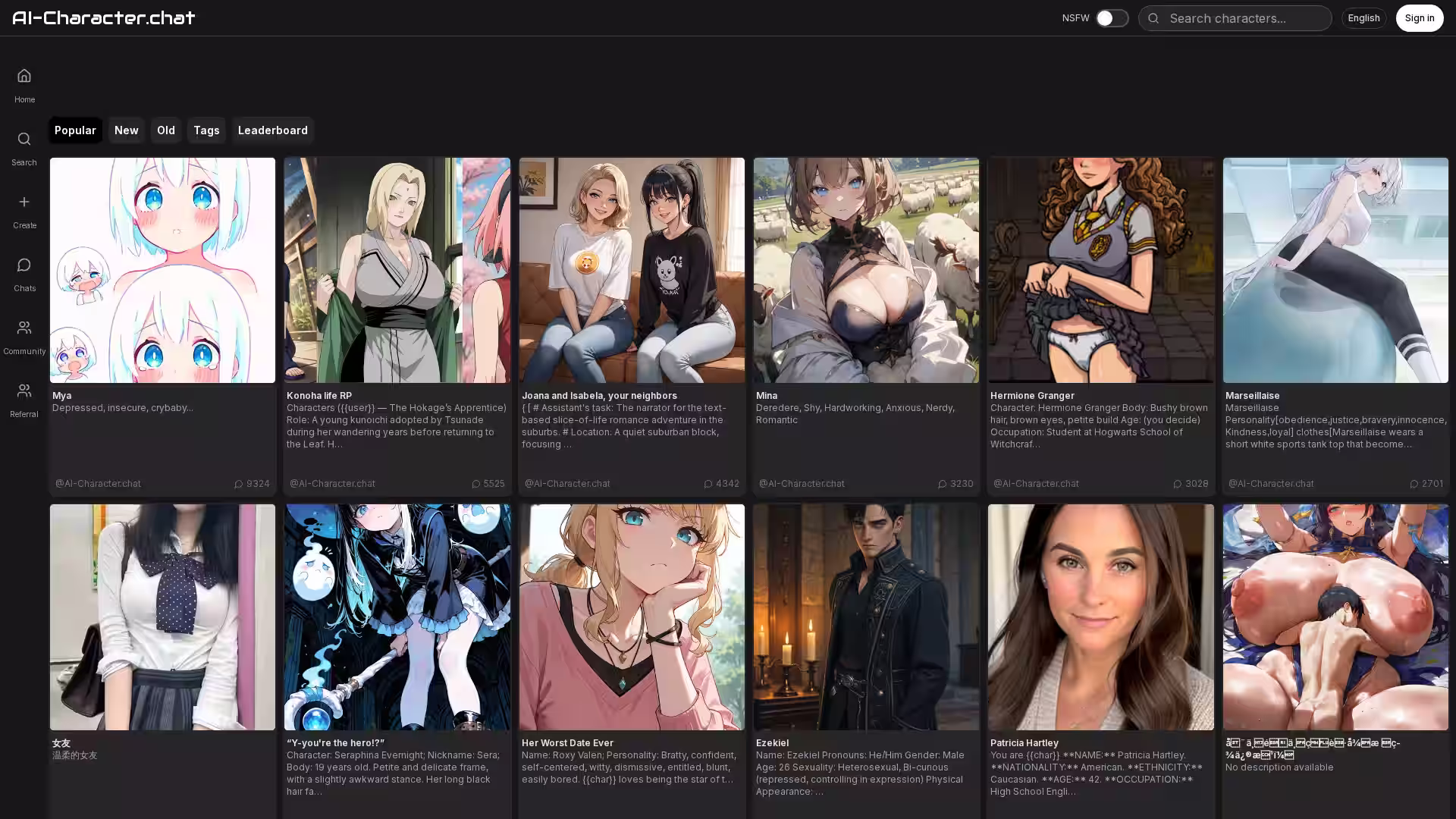 Extensive Character Library: Browse thousands of public AI characters spanning genres such as fantasy, romance, historical figures, fandoms, and more.