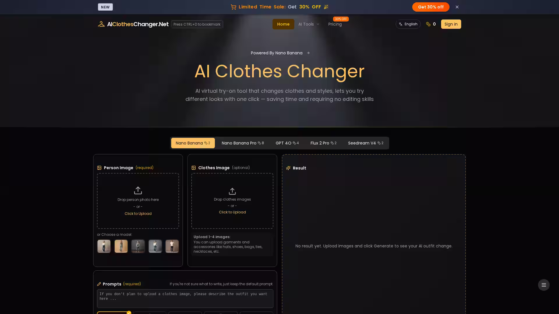 AI Clothes Changer is an advanced AI-powered virtual try-on tool designed to instantly transform outfits in photos — no design skills or expensive photo shoots required. Powered by multiple AI models, including Nano Banana Pro, GPT-4o, Flux, and Seedream V4, the platform allows users to swap clothing items, accessories, and styles on any person’s photo or an official model image with just a few clicks.
