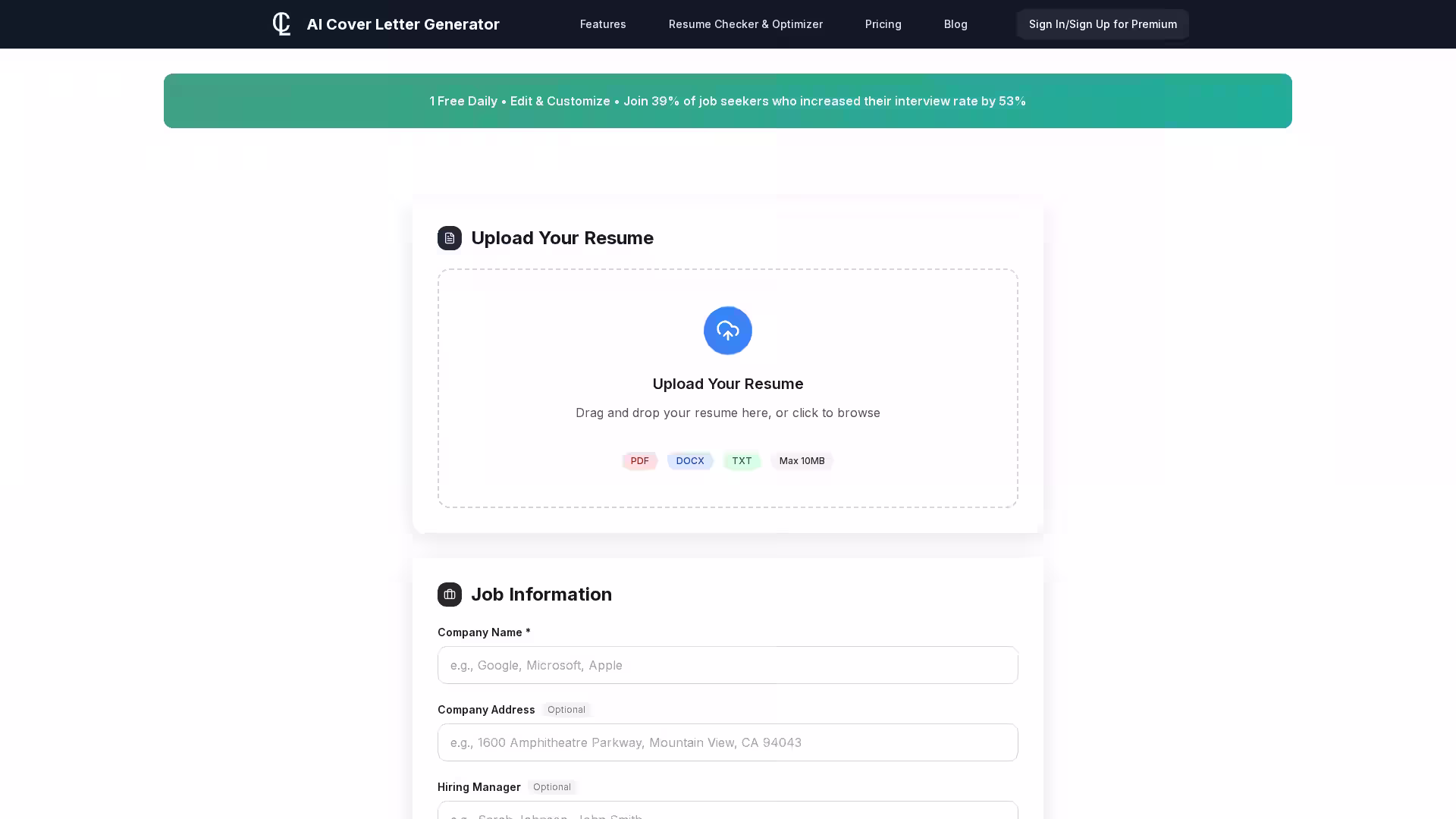 The platform is especially useful for professionals with tight schedules, career changers who need to emphasize transferable skills, or anyone seeking a fast yet impactful application process. With built-in support for multiple file formats (PDF, DOCX, TXT), a resume checker, and advanced optimization features, it’s more than just a generator—it’s a complete job application toolkit.