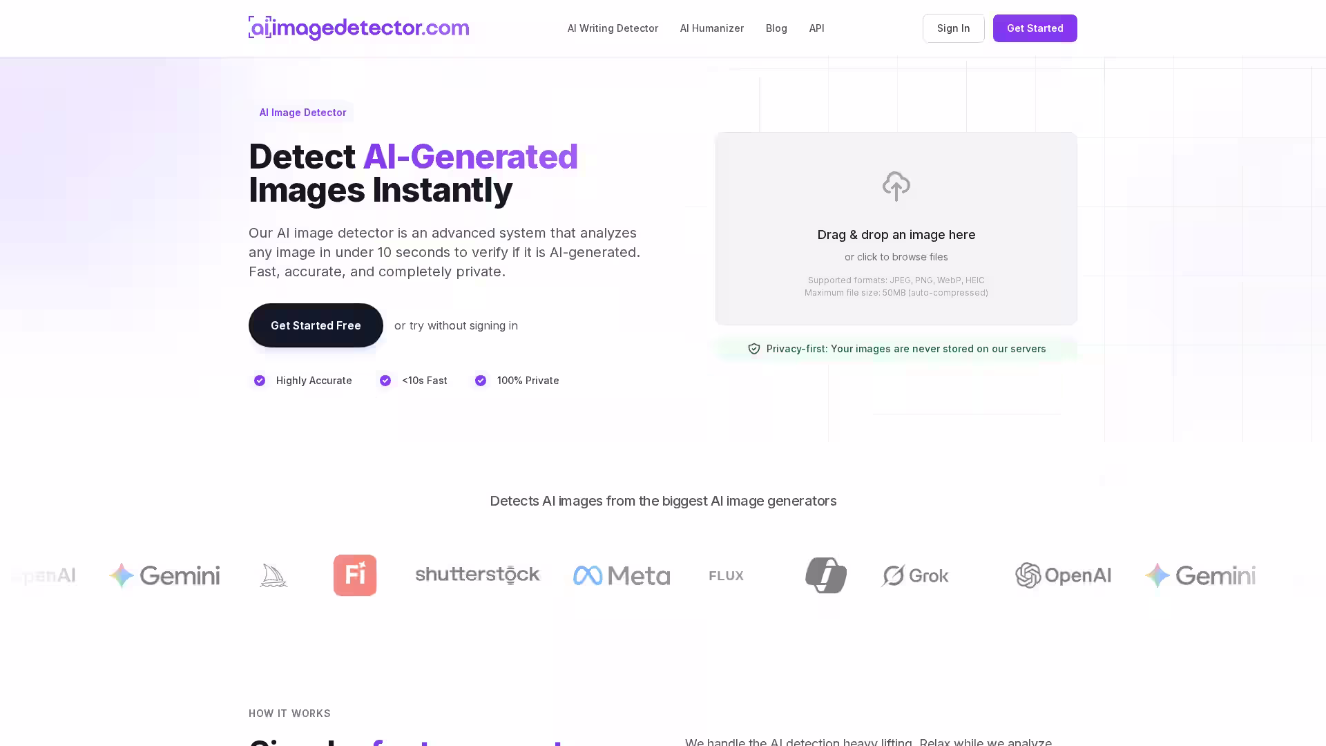Highly Accurate: Advanced algorithms detect AI images from all major AI image generators with high precision.