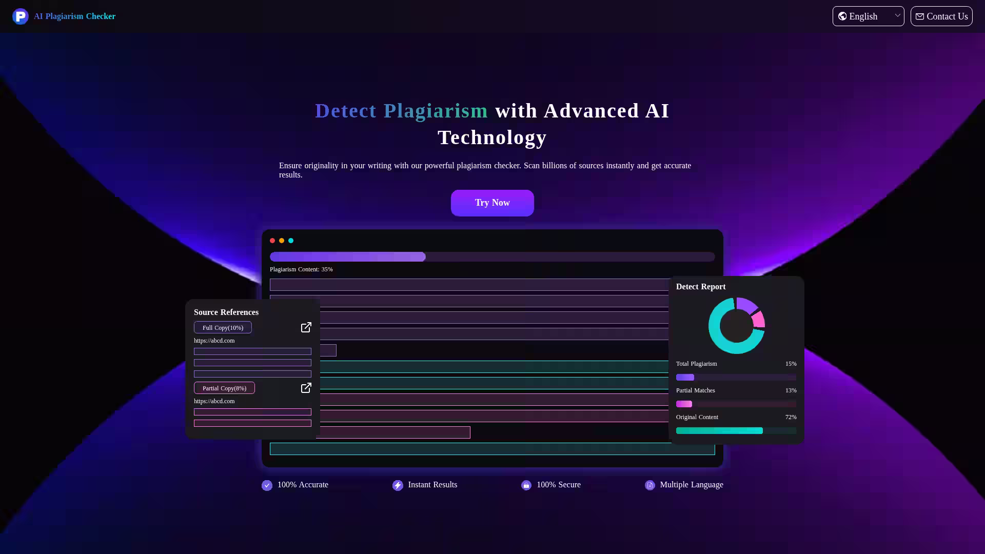 Multiple Language Support: Efficiently detects plagiarism across 8+ languages, catering to a global user base.