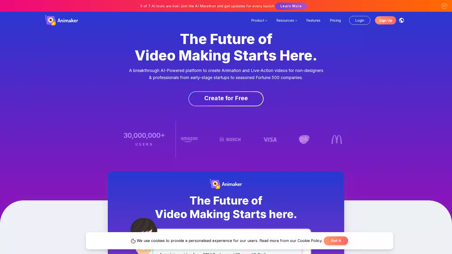 AI-Powered Video Creation: Automate and simplify video production with Animaker’s AI tools that assist in quick animation, live-action video making, subtitle generation, and voiceover creation.