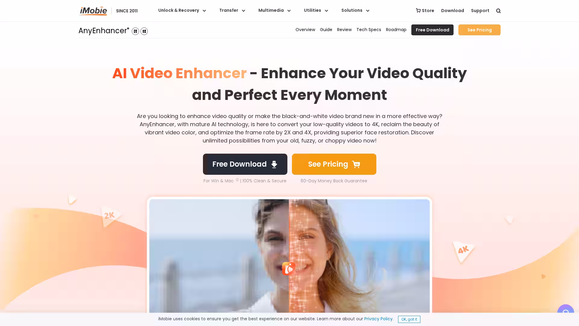 AnyEnhancer is a state-of-the-art AI video enhancement software designed to elevate your video quality effortlessly. Whether you're working with low-resolution clips, blurry faces, old black-and-white footage, or shaky action videos, AnyEnhancer uses advanced AI technology to upscale videos up to 4K, restore facial details, colorize monochrome videos, reduce noise, and optimize frame rates for ultra-smooth playback. Compatible with Windows 10/11 (64-bit) and macOS 11 or later, it empowers users of all skill levels – from content creators and professionals to hobbyists and families – to breathe new life into their videos with just a few clicks.