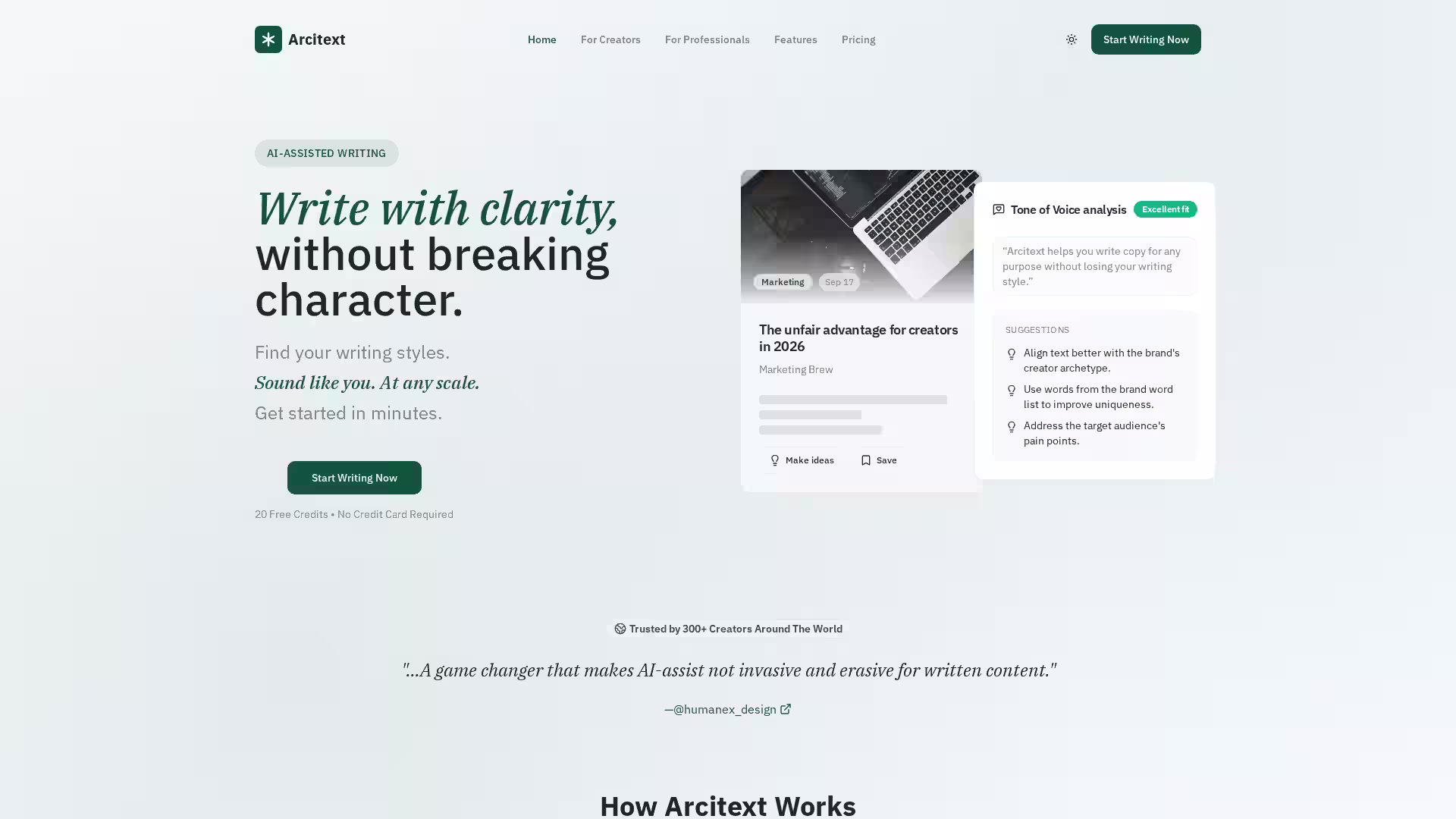 Explore Arcitext today to elevate your writing with AI that complements your unique style and professional needs.