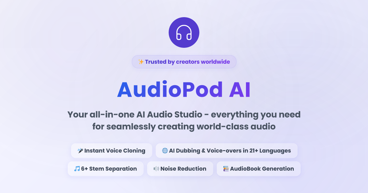 Whether you want to generate professional voiceovers, clone voices with minimal audio samples, create AI-driven music tracks or rap, clean noisy recordings, extract audio from videos, or convert media files across dozens of formats, AudioPod AI offers an integrated, versatile, and accessible solution.