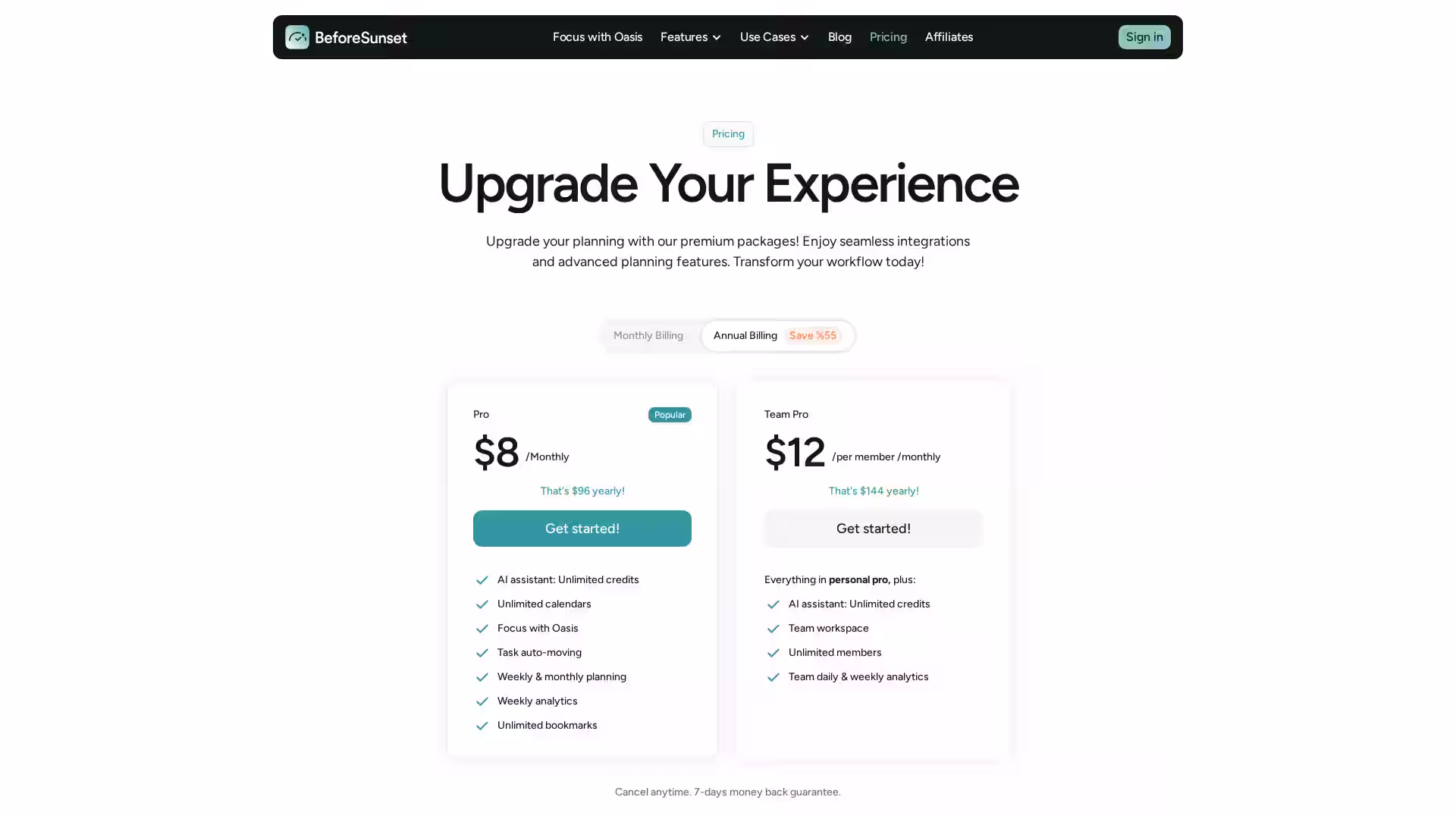 7-Day Money Back Guarantee: Try BeforeSunset AI risk-free with a full refund policy.