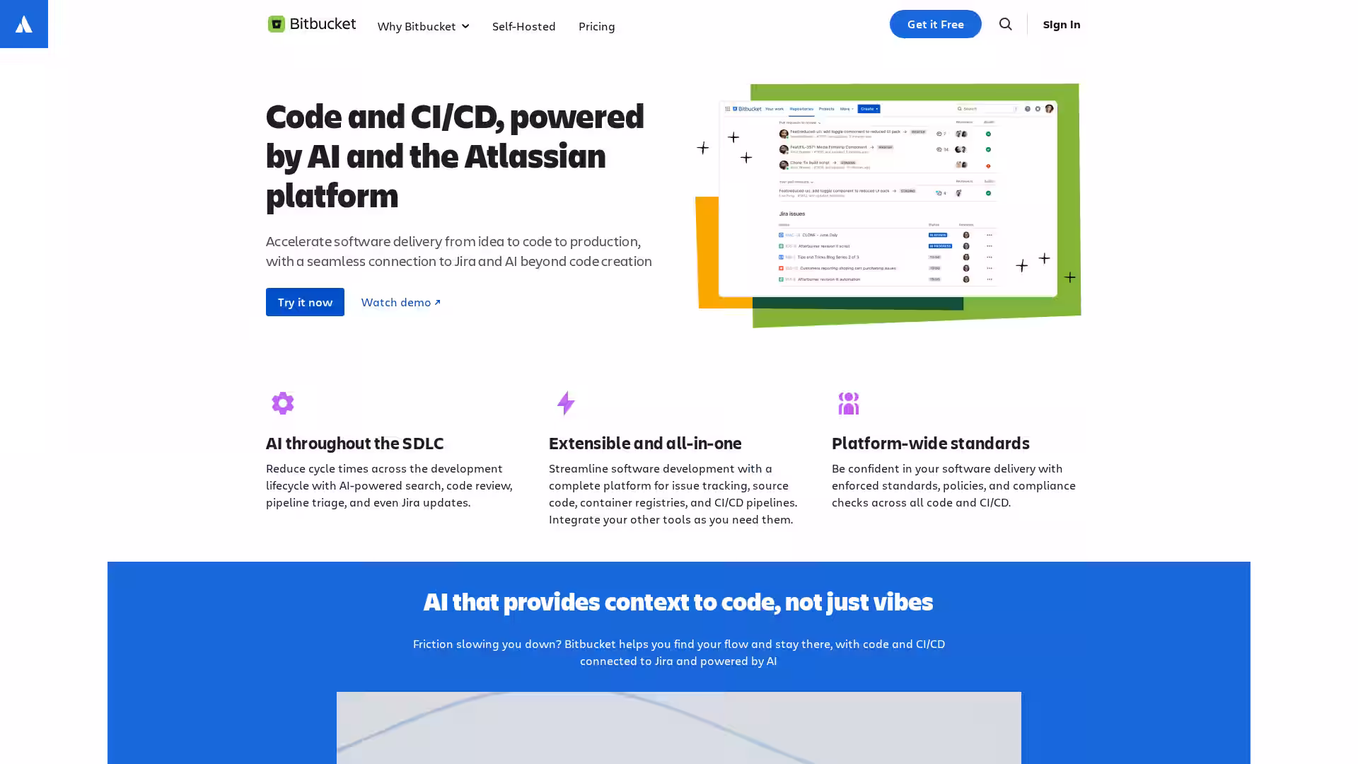 Bitbucket is Atlassian’s Git-based code hosting and CI/CD platform with deep Jira integration, AI features, and enterprise-grade security.