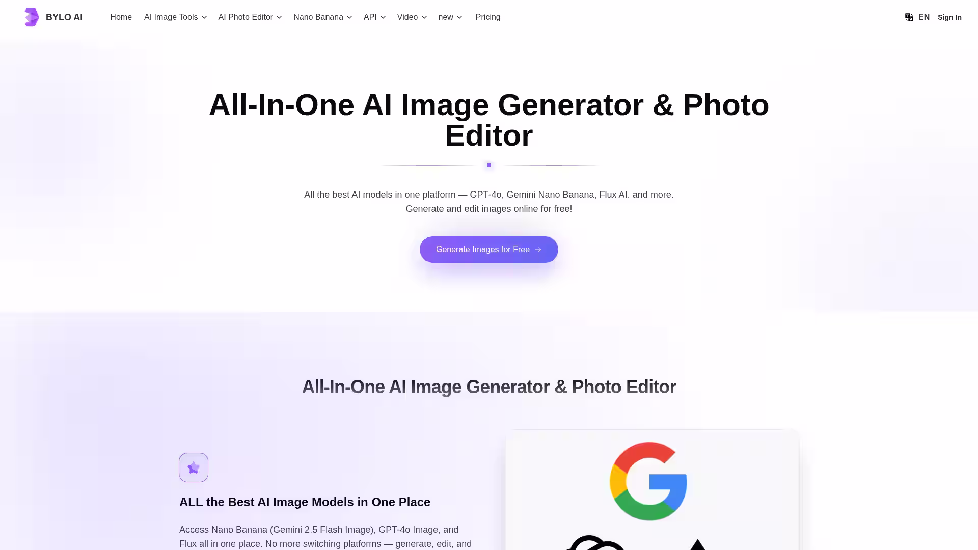 Bylo.ai is a comprehensive online platform that merges the power of multiple cutting-edge AI models such as Nano Banana (Gemini 2.5 Flash), GPT-4o Image, and Flux AI to deliver an all-in-one AI image generation and photo editing experience. Designed for designers, marketers, content creators, and casual users, Bylo.ai simplifies creative workflows by enabling seamless generation, editing, and refinement of images all in one place without switching platforms. Whether you want to generate art from text prompts, apply AI-powered filters, or perform advanced photo enhancements and object manipulations, Bylo.ai offers intuitive tools accessible for free through a user-friendly interface.