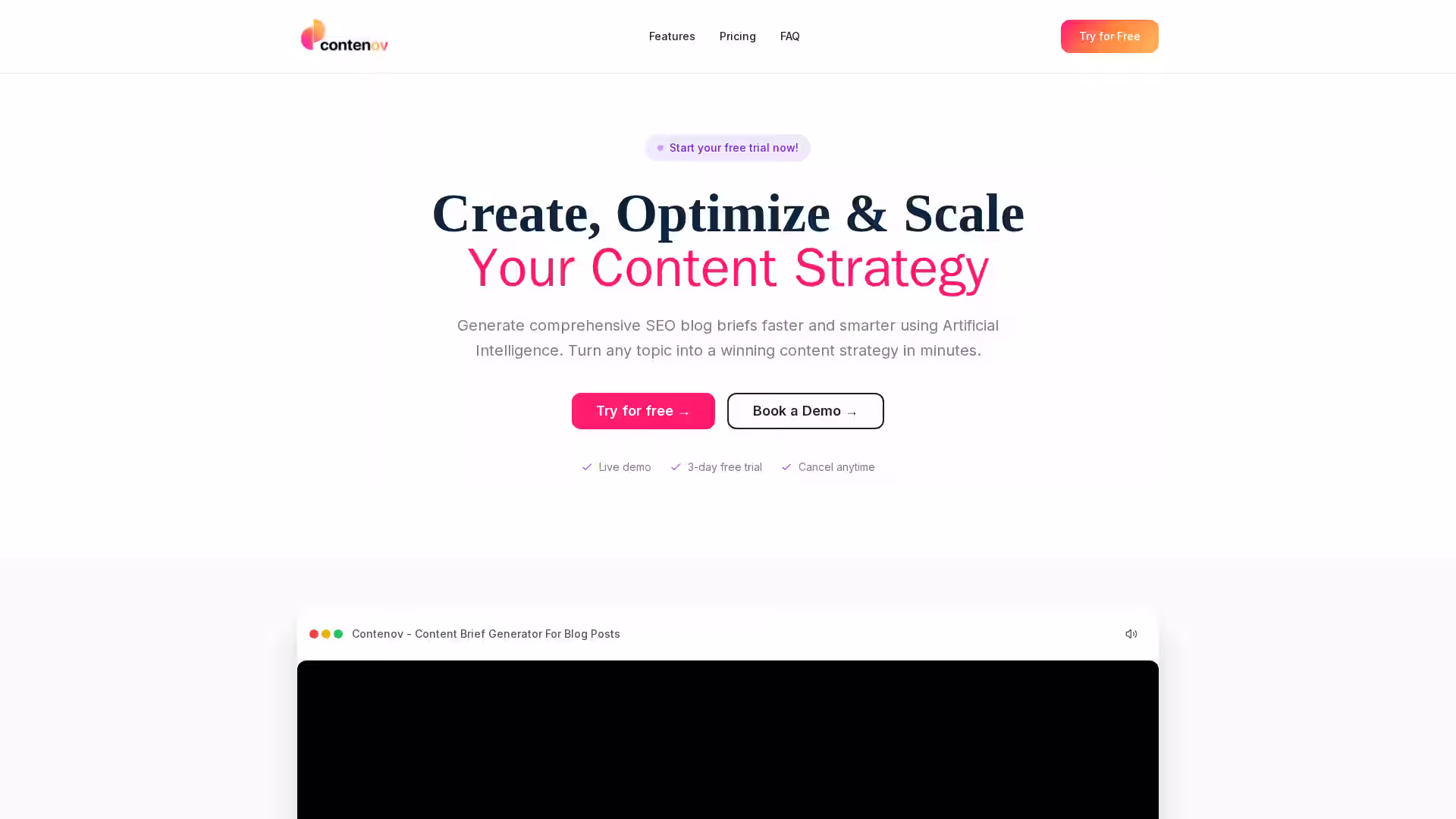 Contenov is an AI-powered content brief generator designed to revolutionize the way agencies, content teams, and creators approach blog content strategy. By leveraging advanced artificial intelligence, Contenov automates competitive research and deep analysis to create actionable, SEO-optimized content briefs in minutes instead of hours. This tool addresses the common challenges of manual research, inconsistent quality, and high costs associated with traditional content briefing methods.