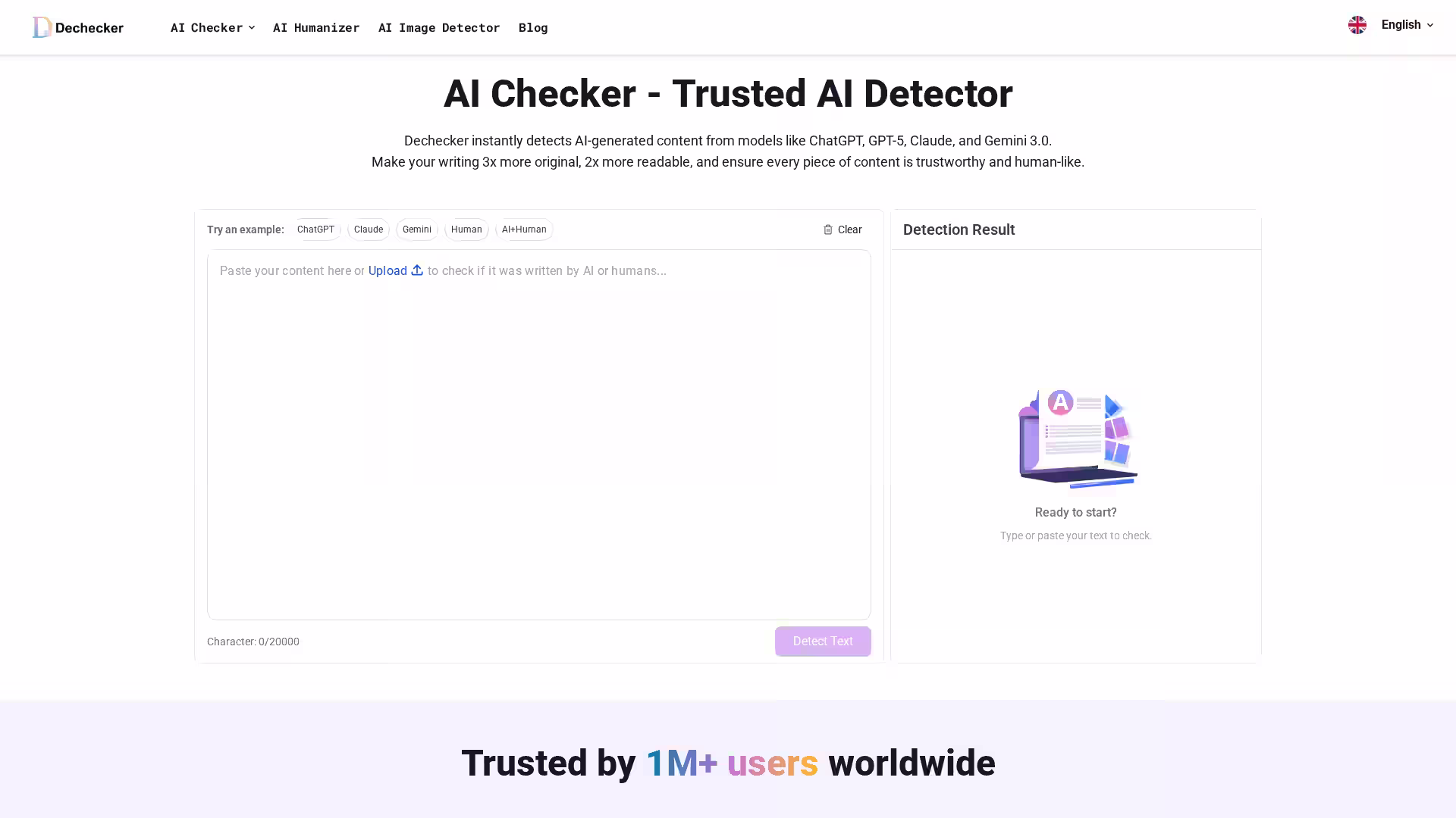 Dechecker is an advanced AI-powered platform designed to detect AI-generated text and analyze content authenticity. With the rise of AI writing tools, detecting artificially generated text has become critical for businesses, educators, publishers, and individuals aiming to protect content integrity. Dechecker provides a robust solution by identifying whether text was produced by AI models, offering precision, transparency, and actionable recommendations.