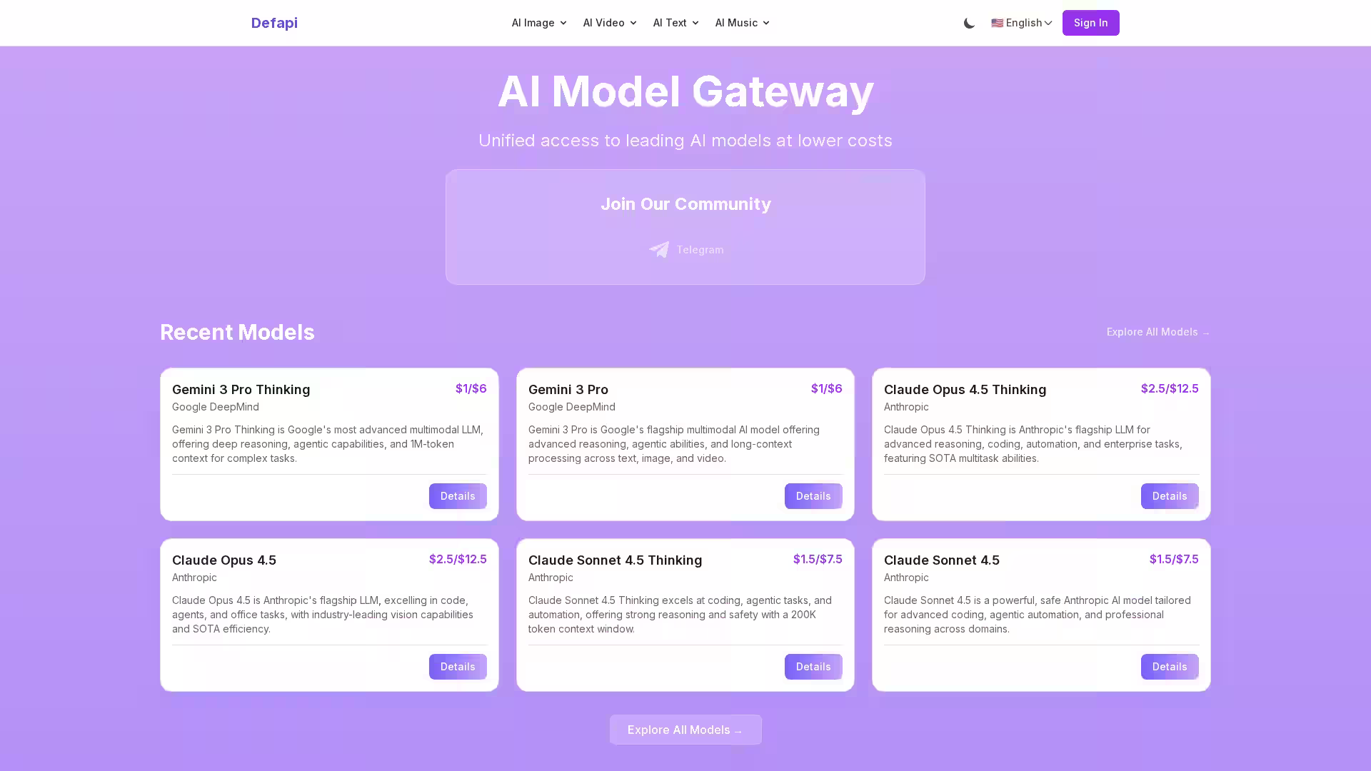 Defapi is a unified AI API platform aggregating models from top providers, enabling developers to access diverse AI capabilities via one interface.
