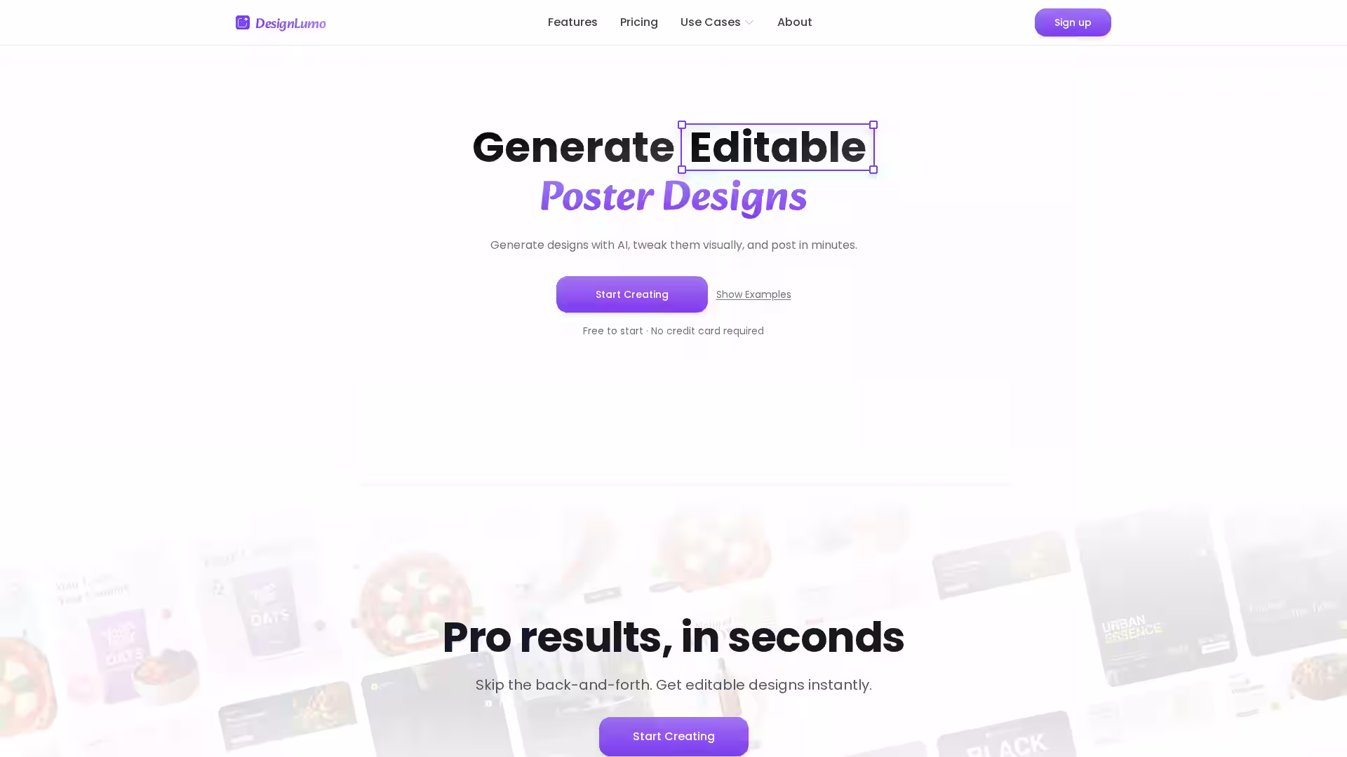 No, though it’s optimized for social media creatives, DesignLumo also generates flyers, banners, infographics, and a variety of other marketing collateral based on your descriptions.