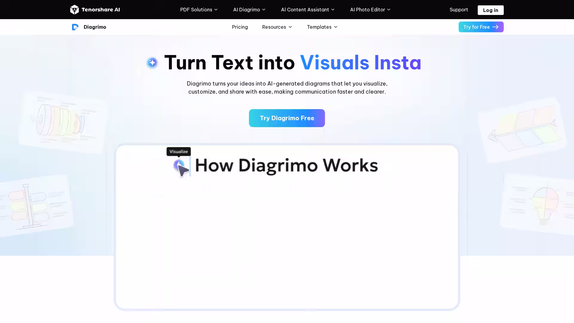 Diagrimo is an AI-powered diagram generator created by Tenorshare that allows users to transform text, ideas, and concepts into clear, structured visual diagrams in seconds. Whether you're working on presentations, reports, educational materials, or social media visuals, Diagrimo leverages semantic understanding to intelligently choose and populate the right type of diagram for your content. Users can paste or type text directly or use the integrated AI Assistant, powered by the latest ChatGPT model, to brainstorm and create text that’s ready for visualization.