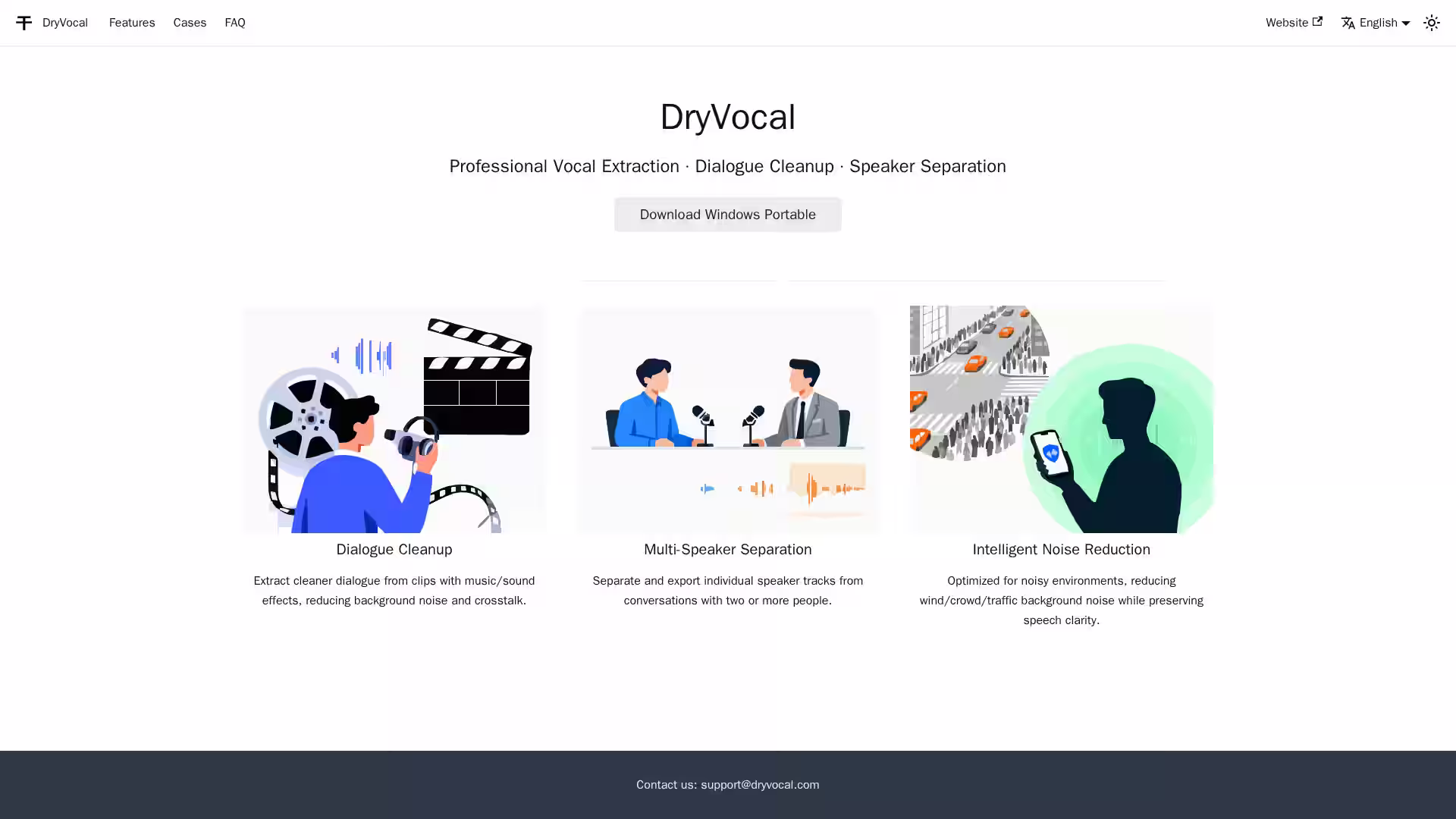 DryVocal is a powerful audio processing software designed for professionals who need clear vocal tracks and dialogue in complex sound environments. It specializes in vocal extraction, dialogue cleanup, multi-speaker separation, and intelligent noise reduction. Whether you're working on music production, film post-production, podcasts, or any audio content involving human voices, DryVocal offers innovative tools to isolate vocals, reduce background noise, and separate speakers with ease.