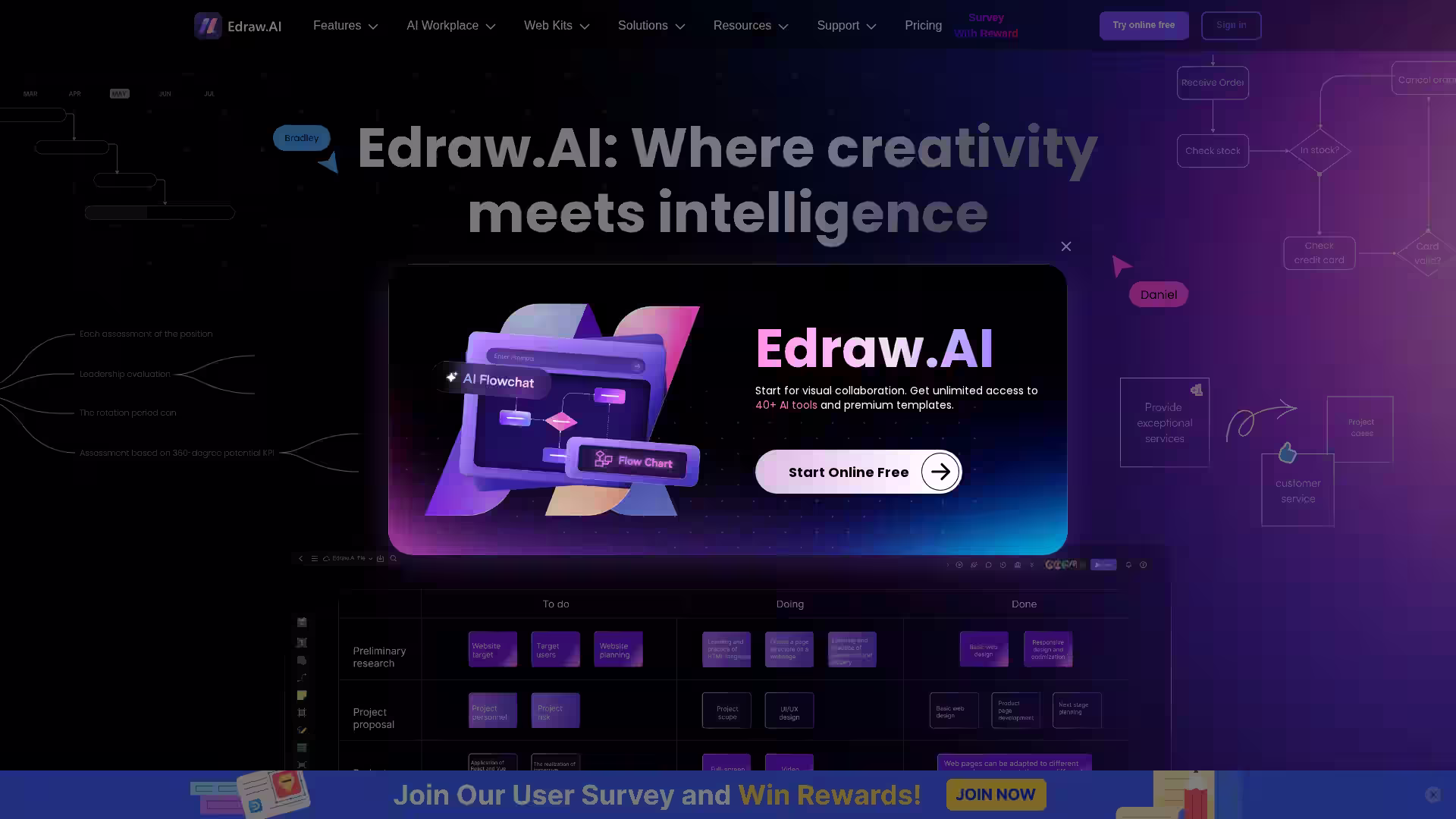 Edraw.AI is developed by the creators of EdrawMax and EdrawMind — long trusted by millions of users across more than 100 countries. It integrates seamlessly with web and desktop workflows to deliver an effortless experience for distributed teams.