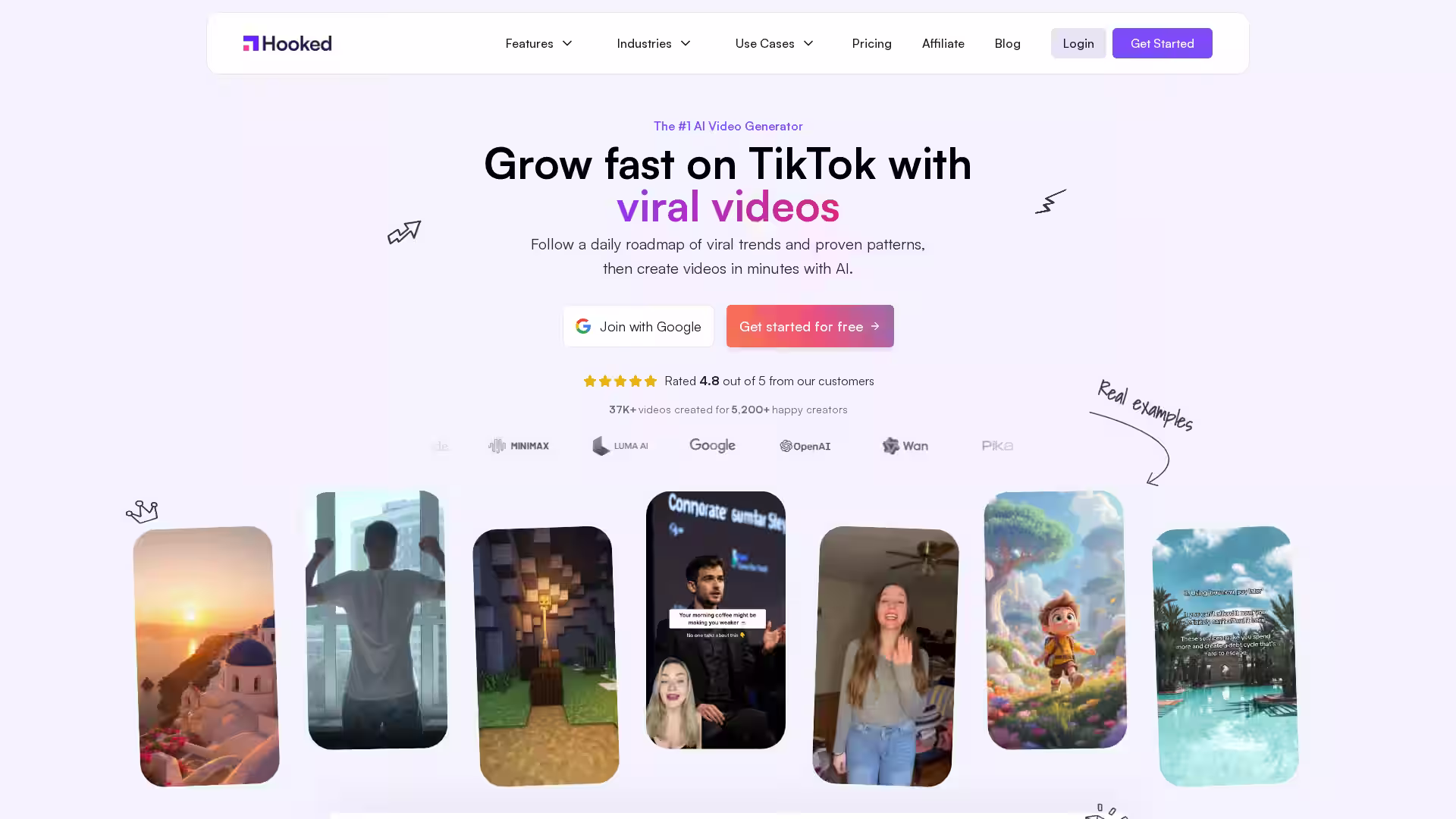 Hooked’s AI videos are rated highly by thousands of creators for professional quality, natural AI avatars, and engaging content formats designed to increase views and engagement.