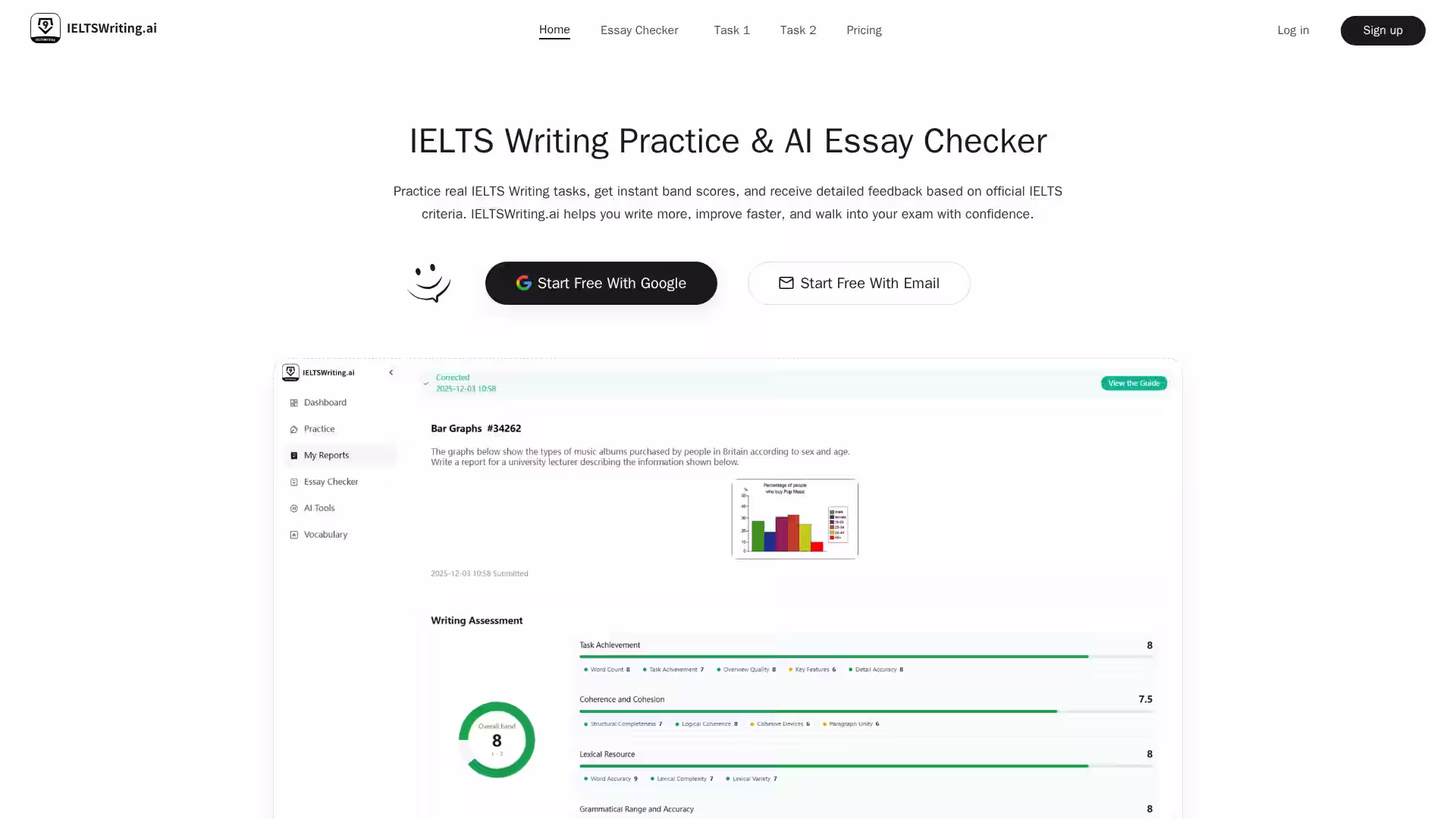 Q: Does IELTSWriting.ai support both Task 1 and Task 2?