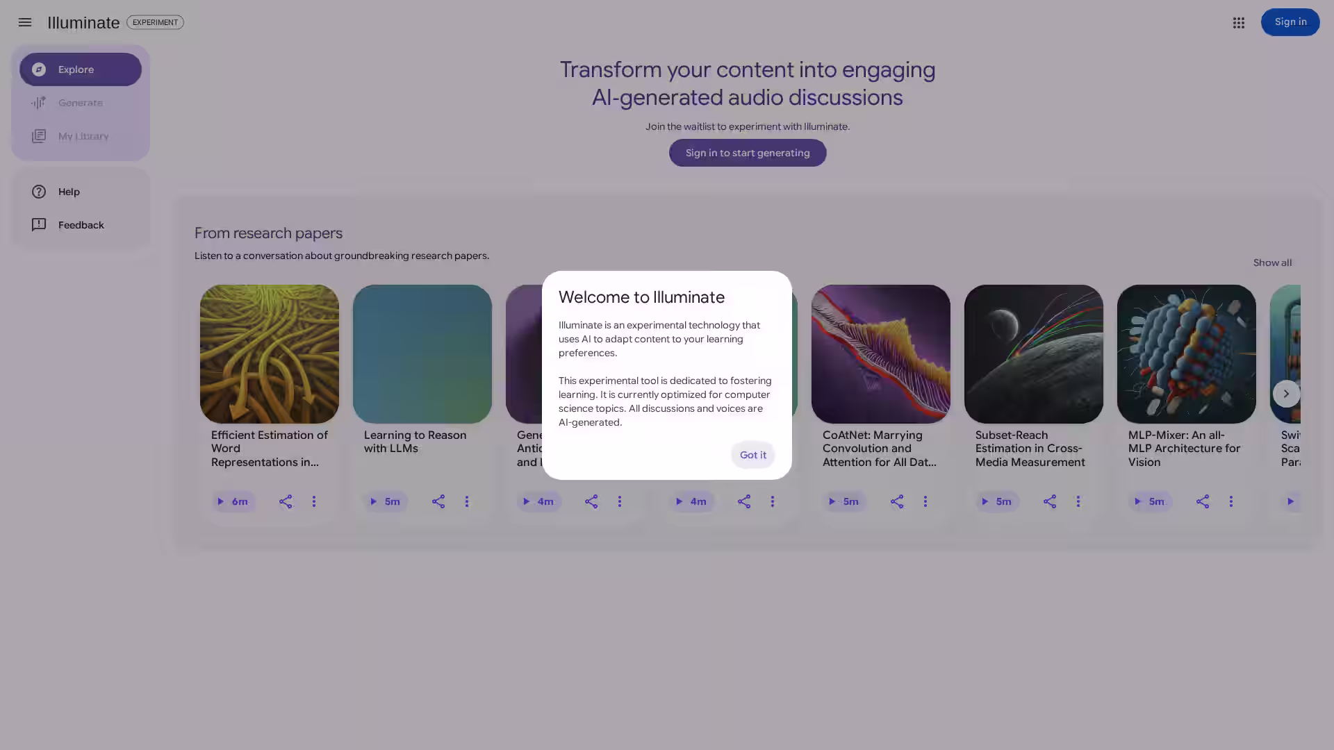 Illuminate is an innovative learning platform developed by Google, designed to help individuals pursue education and skill development in a way that is aligned with their personal preferences, pace, and goals. The service facilitates an environment for experimentation, critical thinking, and self-directed exploration, making it unique among e-learning tools. Whether you’re a student aiming for academic success, a professional building new capabilities, or simply a curious mind, Illuminate offers a flexible and engaging way to expand your knowledge.