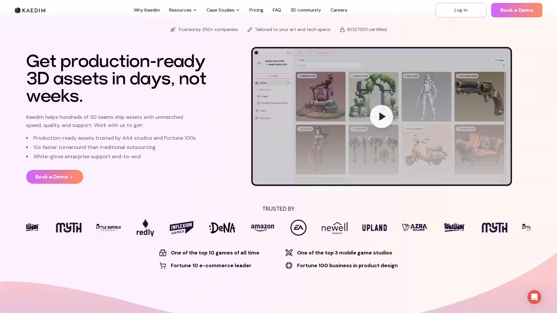A: Yes, potential customers can book a demo to see how Kaedim can accelerate their 3D asset production.