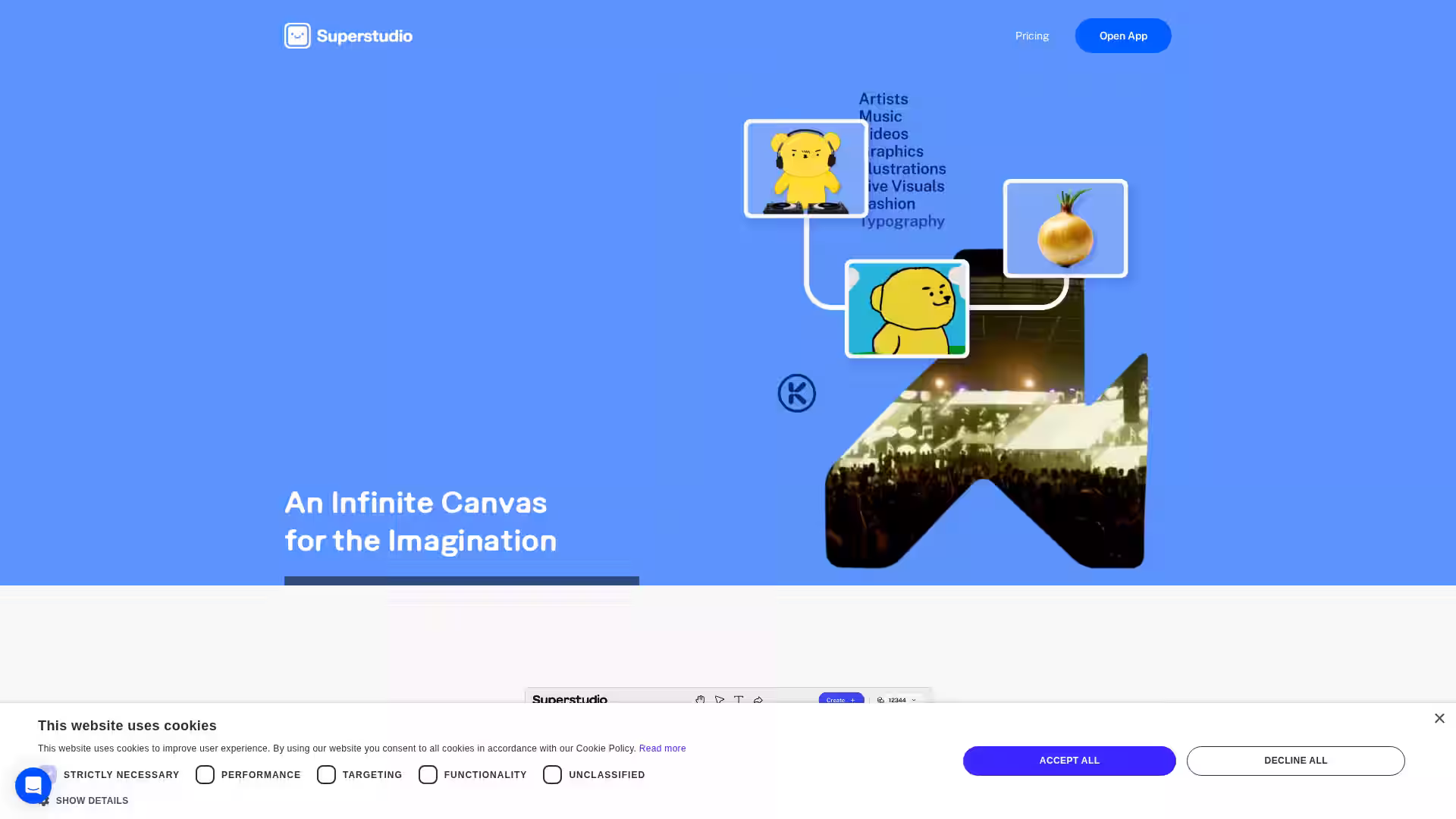 An infinite creative canvas combining AI-powered tools for image, video, and sound, designed for artists, musicians, and creators.