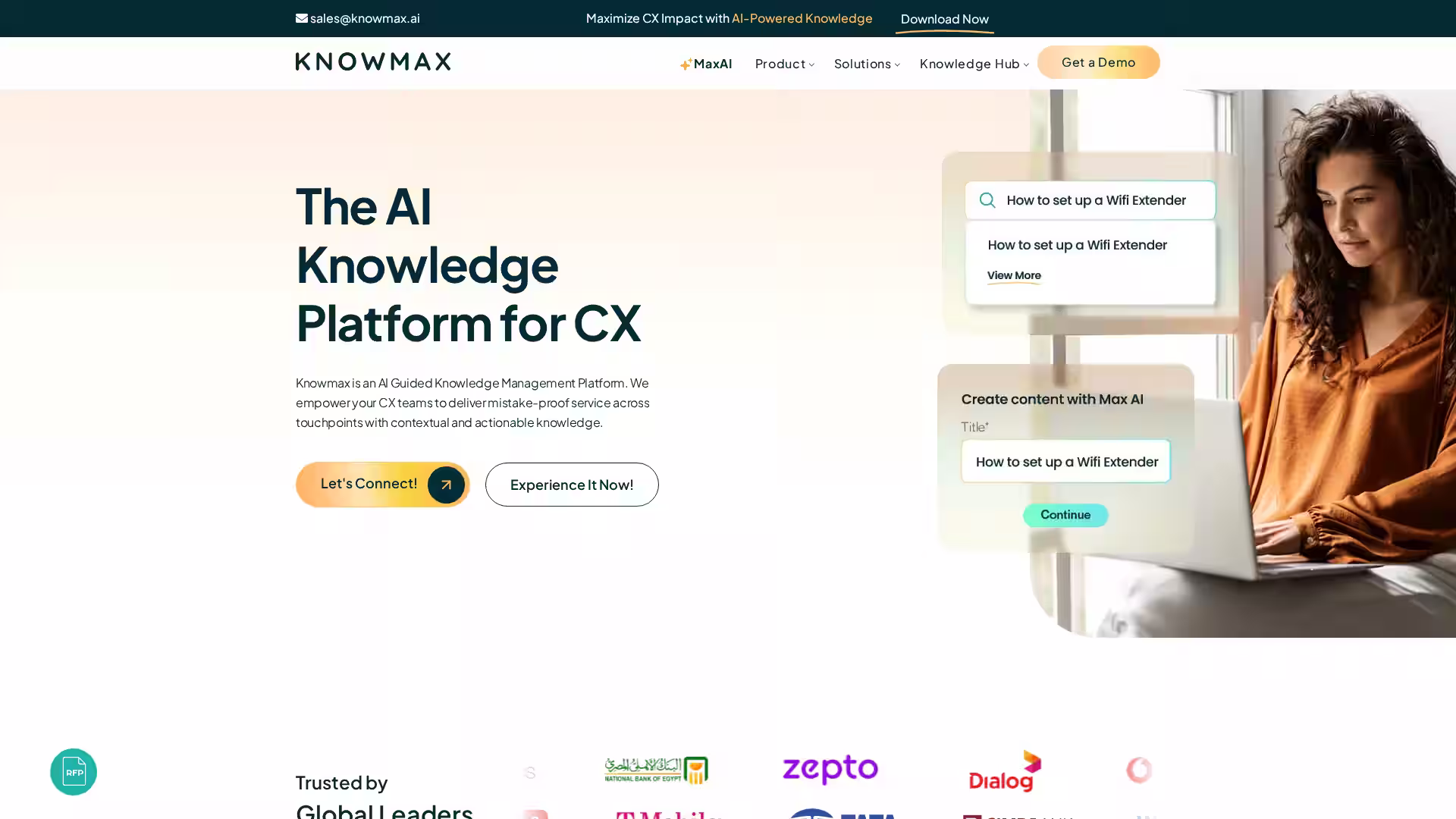Knowmax is a comprehensive knowledge management platform designed to help organizations streamline their customer service and internal operations. By organizing and centralizing structured and unstructured information, Knowmax empowers customer support teams, field service professionals, and other employees to access the right information at the right time. This promotes faster resolution times, reduces human error, and improves both customer and employee experiences.