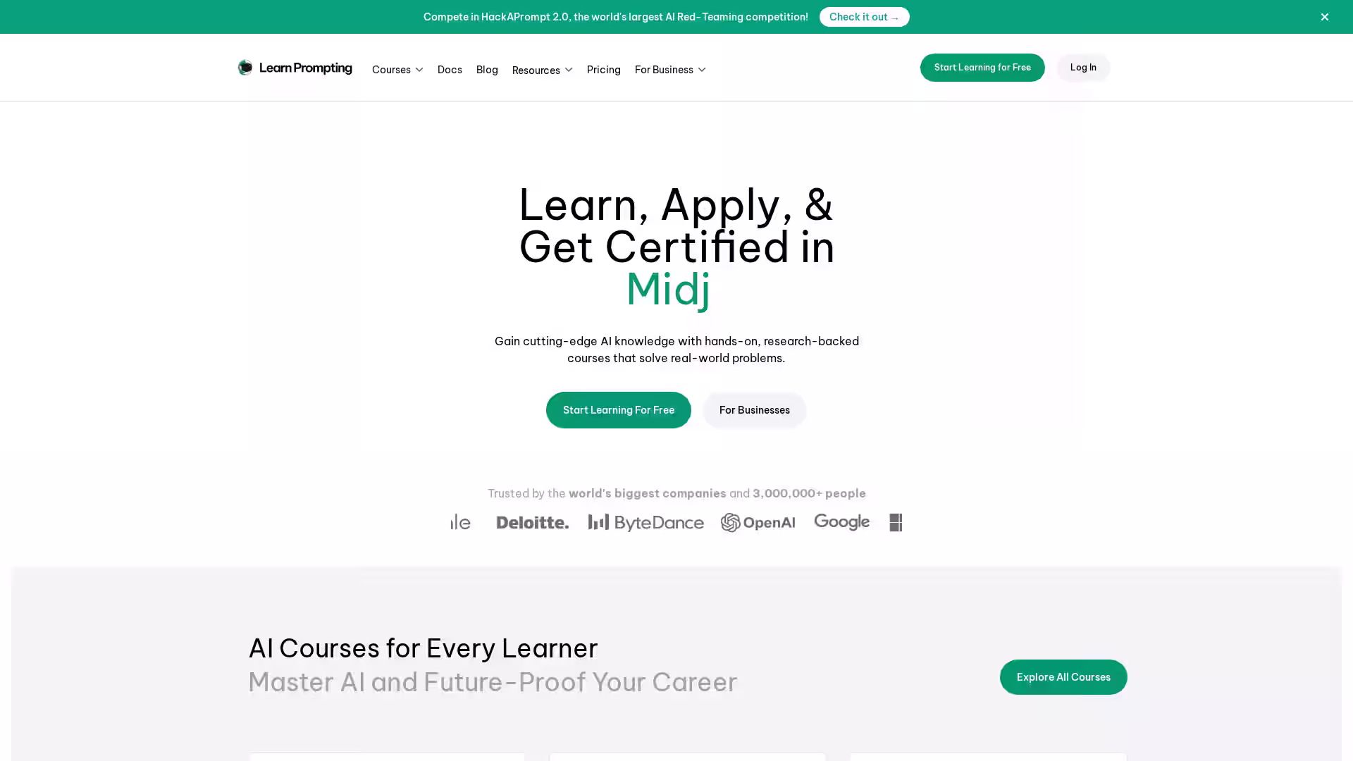 A: Trusted by over 3 million learners and many of the world’s largest companies, Learn Prompting is recognized for its research-driven, industry-leading content.