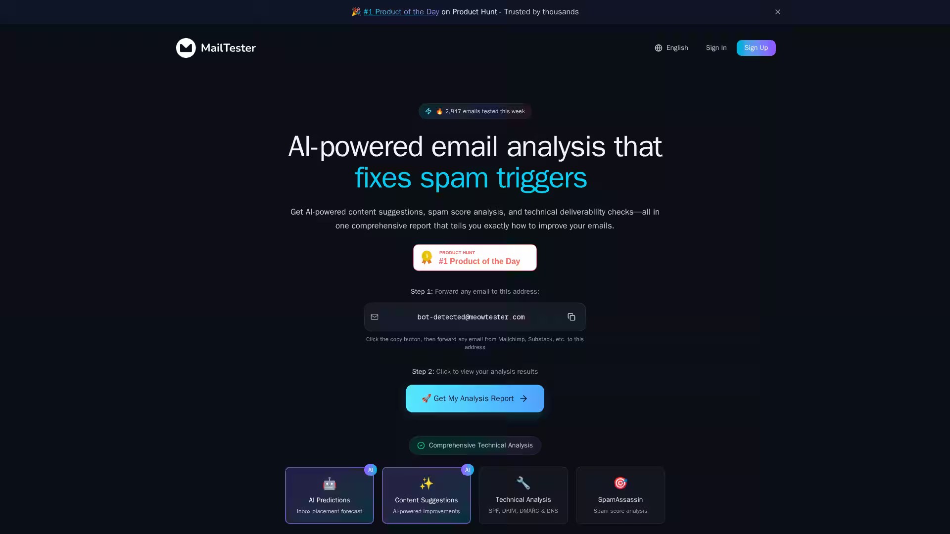 Unlike tools that focus only on technical setup, MailTester.ai uniquely combines in-depth authentication checks with AI-driven content analysis and rewriting to fix the most common deliverability killer — poor email content.