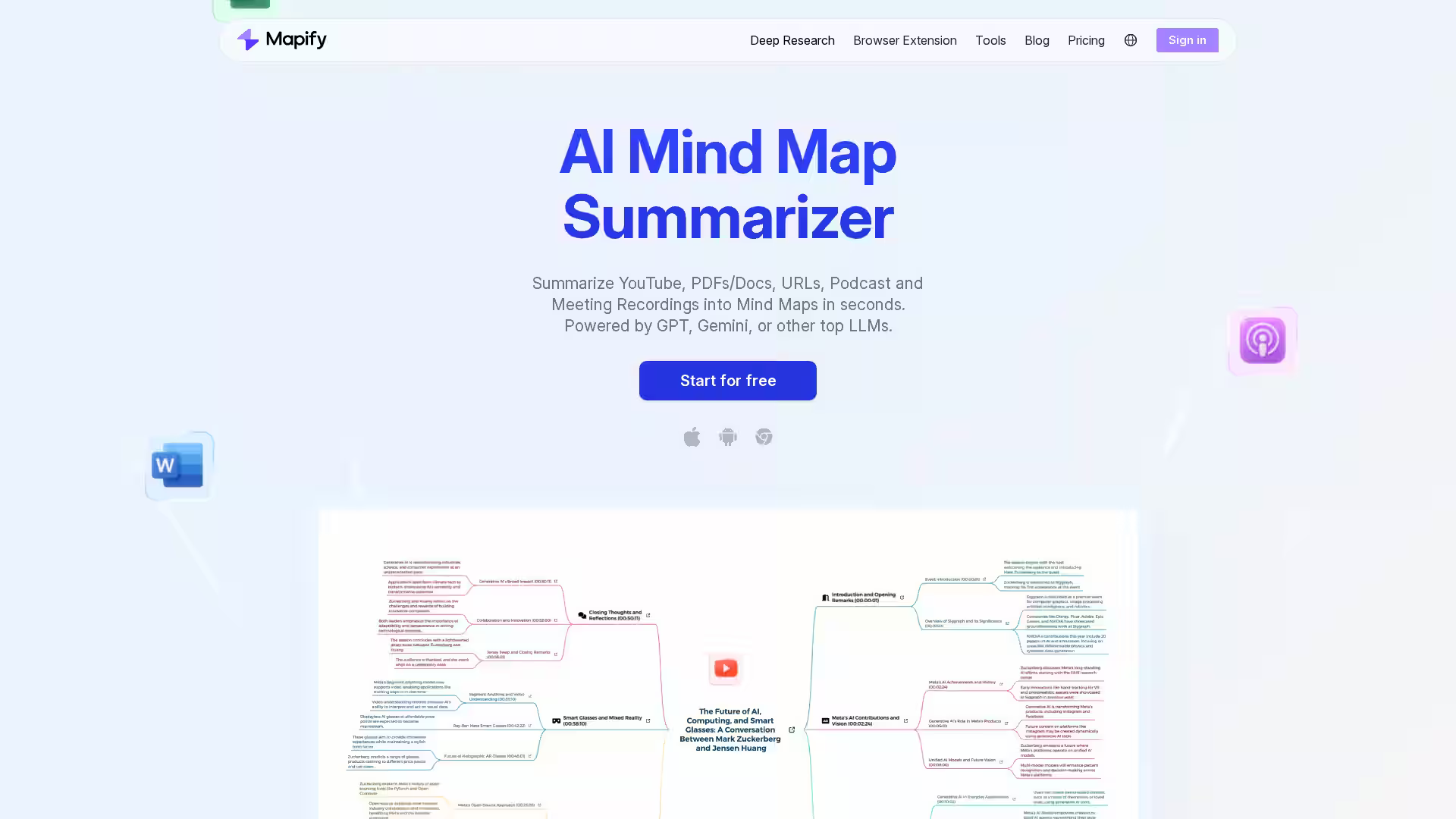 AI tool that turns videos, documents, webpages & audio into structured mind maps in seconds for faster learning & idea generation.