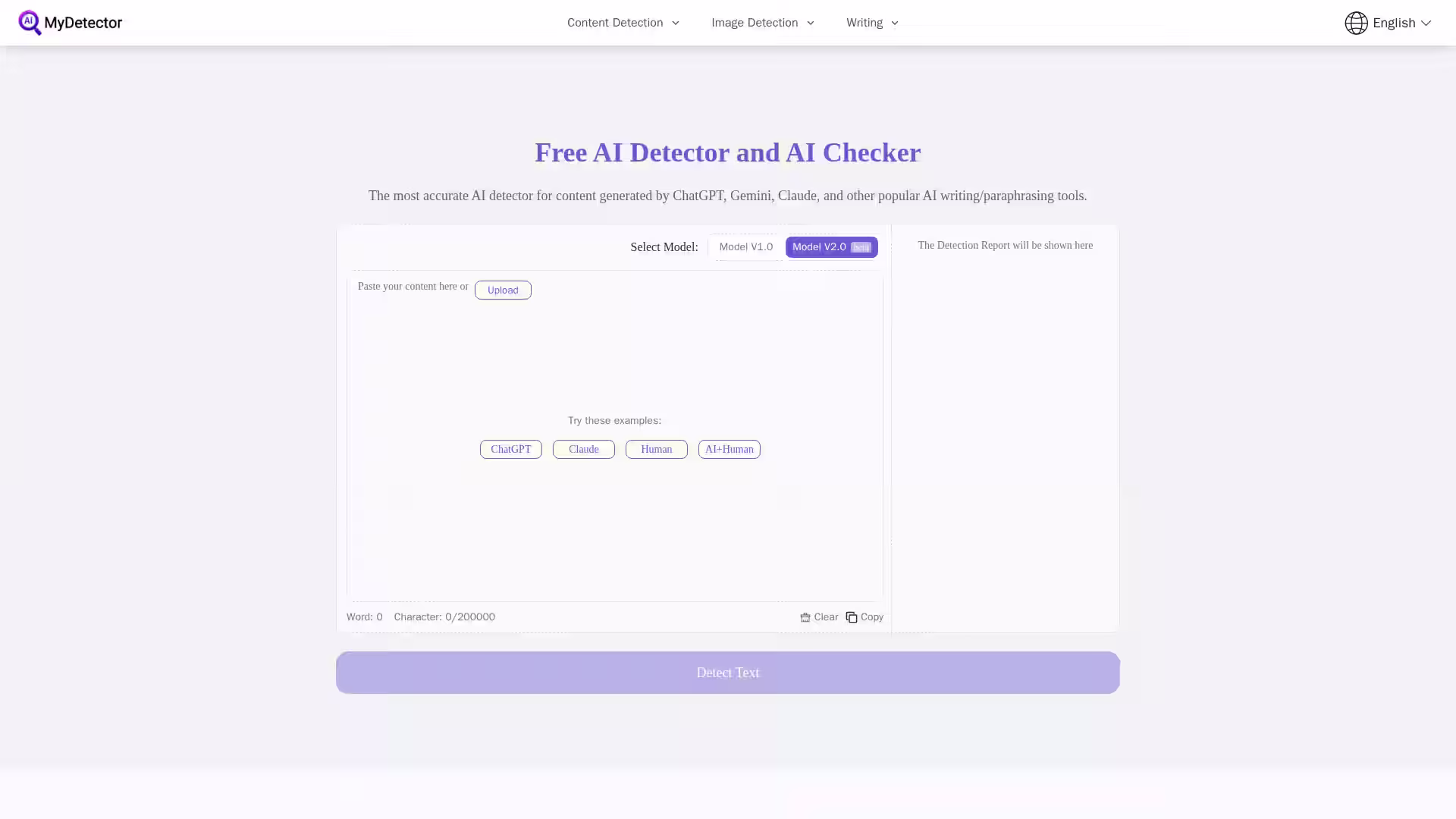 MyDetector AI is a powerful and free AI content detection tool designed to distinguish human-written text from AI-generated content created by popular systems such as ChatGPT, Gemini, Claude, and other AI writing or paraphrasing tools. Utilizing cutting-edge machine learning algorithms and multi-lingual models, MyDetector AI offers high-precision detection that helps users verify the authenticity and originality of text effortlessly. Whether you are a content creator, educator, marketer, researcher, or legal professional, this tool provides fast, reliable, and privacy-conscious results — all without the need for registration or fees.