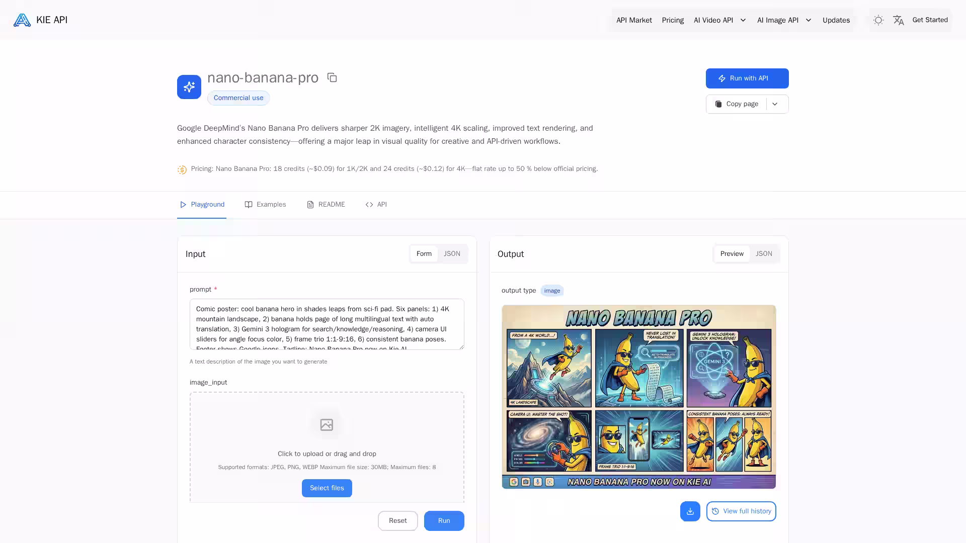 Google's Nano Banana Pro represents a next-generation step in AI imaging, expanding on the Gemini 3.0 Pro architecture. This upgraded model offers not only better visual clarity but also context-aware reasoning and multi-object scene coherence. Kie.ai makes these powerful capabilities available to developers at significantly reduced costs compared to other providers like Replicate, Fal.ai, and Google Vertex AI, starting at just $0.09 per image for 1K–2K generation and $0.12 per image for 4K.