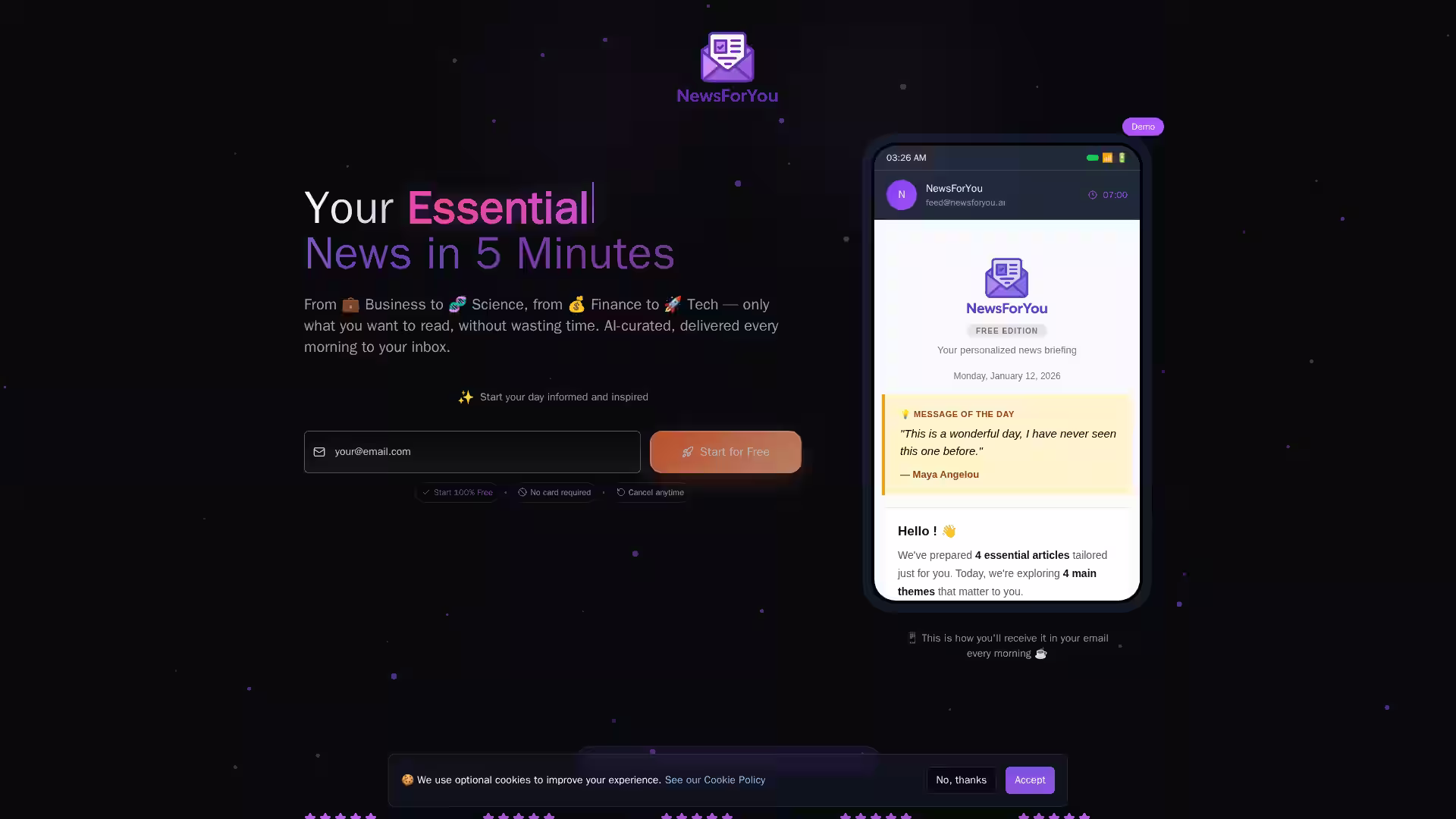 Q2: Are news summaries generated automatically by AI? A: Yes. NewsForYou employs natural language processing to create concise summaries that maintain accuracy and essential context.