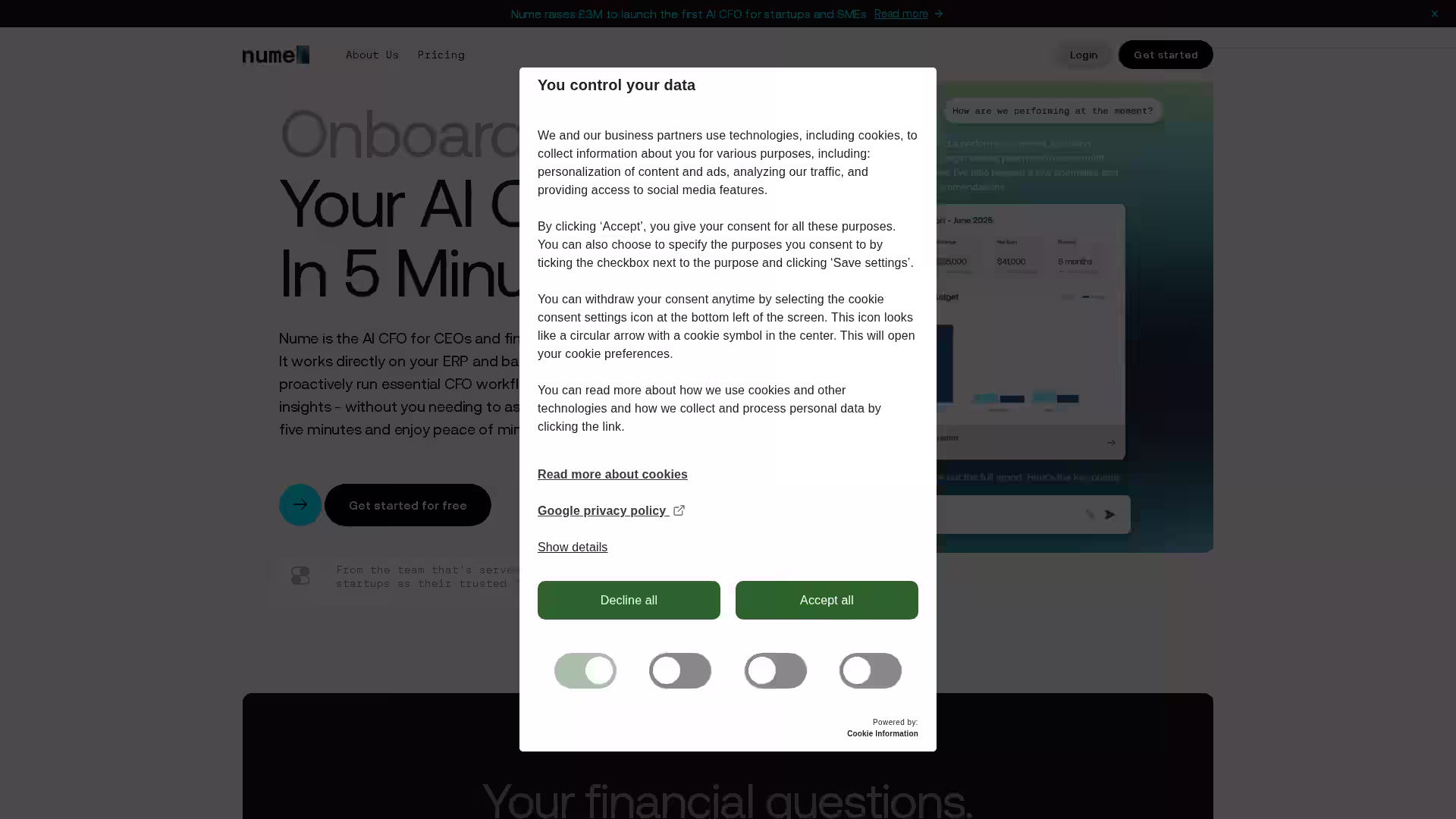 Q: Who is behind Nume? A: Nume is developed by Scaleup Finance, a team of experienced CFOs who have worked with over 500 startups and SMEs.