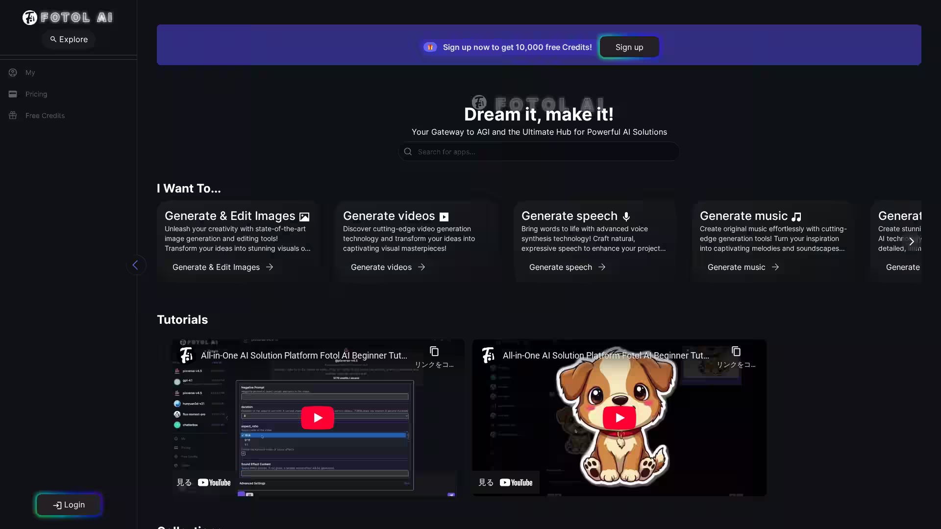 Fotol AI is your comprehensive gateway to Artificial General Intelligence (AGI) and a versatile hub for powerful AI-driven creative tools. It empowers users ranging from artists and content creators to developers and businesses with state-of-the-art AI technologies that generate and edit images, create videos, synthesize speech, compose music, build 3D assets, and enable advanced conversational AI. Whether you're looking to transform ideas into captivating visuals, develop immersive 3D models, enhance multimedia projects with realistic audio, or harness AI-powered chat capabilities, Fotol AI offers an expansive suite of applications all accessible via a seamless platform.