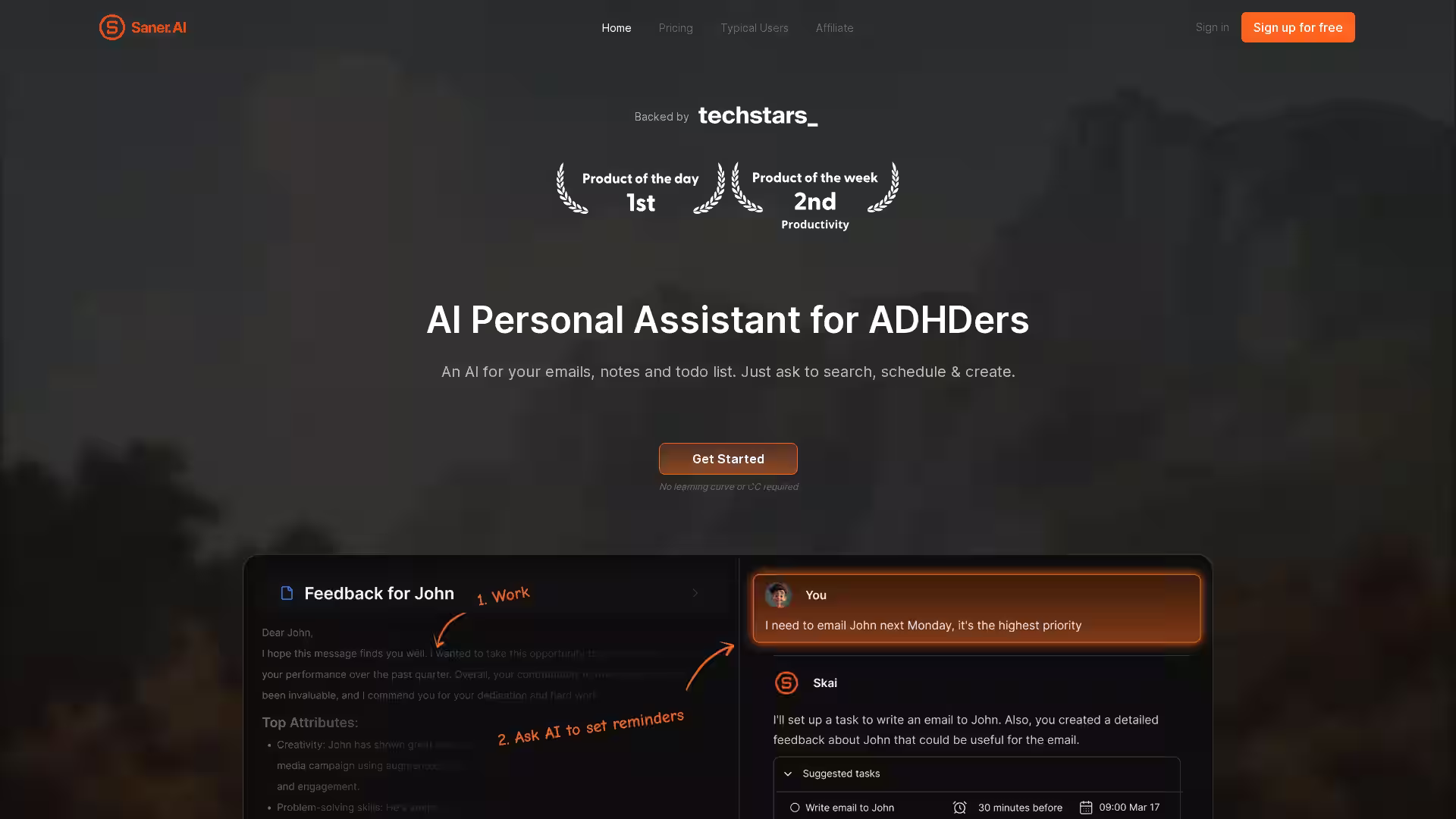 Q: How does Saner.AI tailor its assistance to ADHD users?
