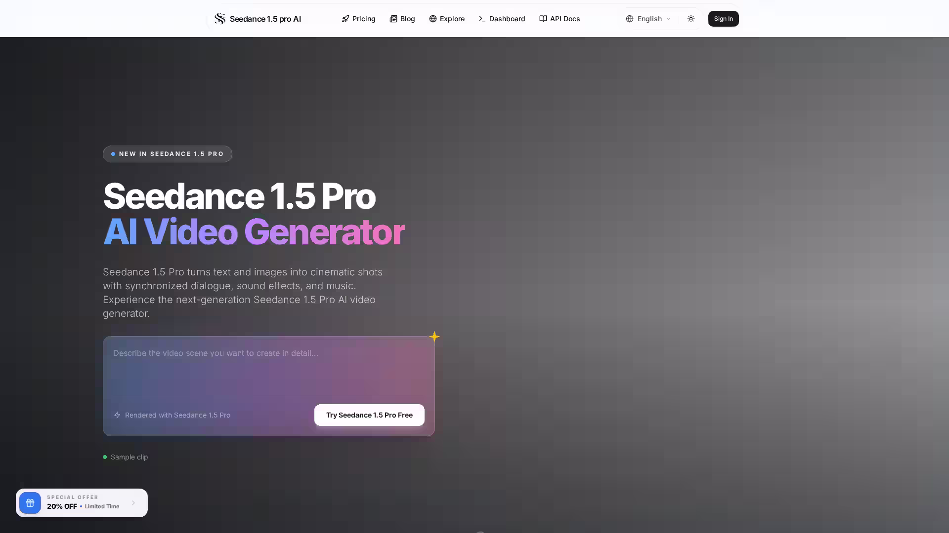 Start creating cinematic AI videos effortlessly with Seedance 1.5 Pro, and bring your ideas to life with synchronized sound and stunning visuals—all from simple text or images.