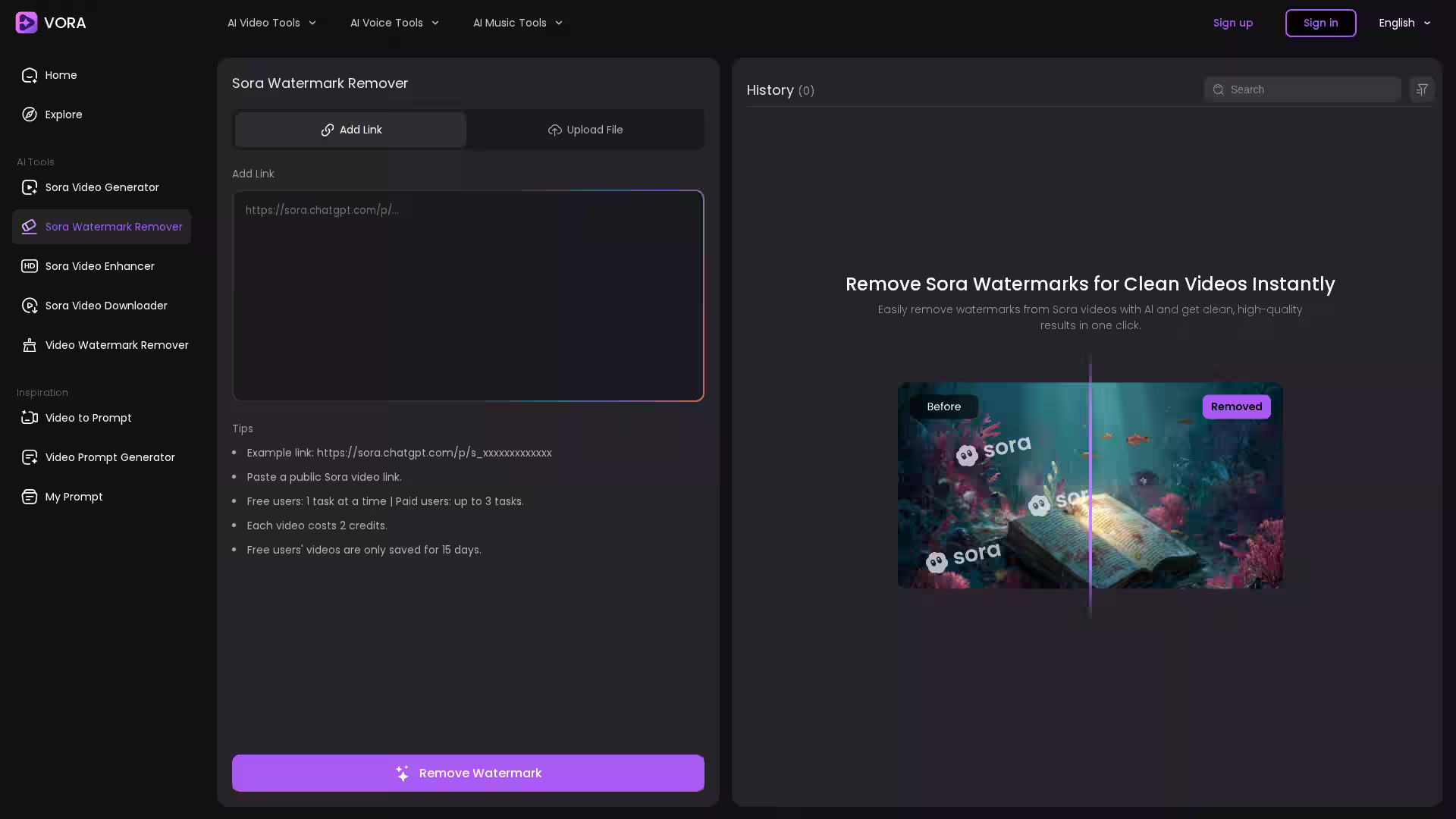 Fineshare AI Sora Watermark Remover intelligently detects and erases text overlays and semi-transparent logos from your videos while preserving every detail — from resolution and frame rate to color and sharpness. Get flawless, high-quality results in just one click.🚀 ⭐ Key Features: Automatic Al Detection: Identify Sora watermarks—text overlays or logos—regardless of their position, size, or transparency. Preserve Video Quality: Maintain original resolution, frame rate, color space, and shar