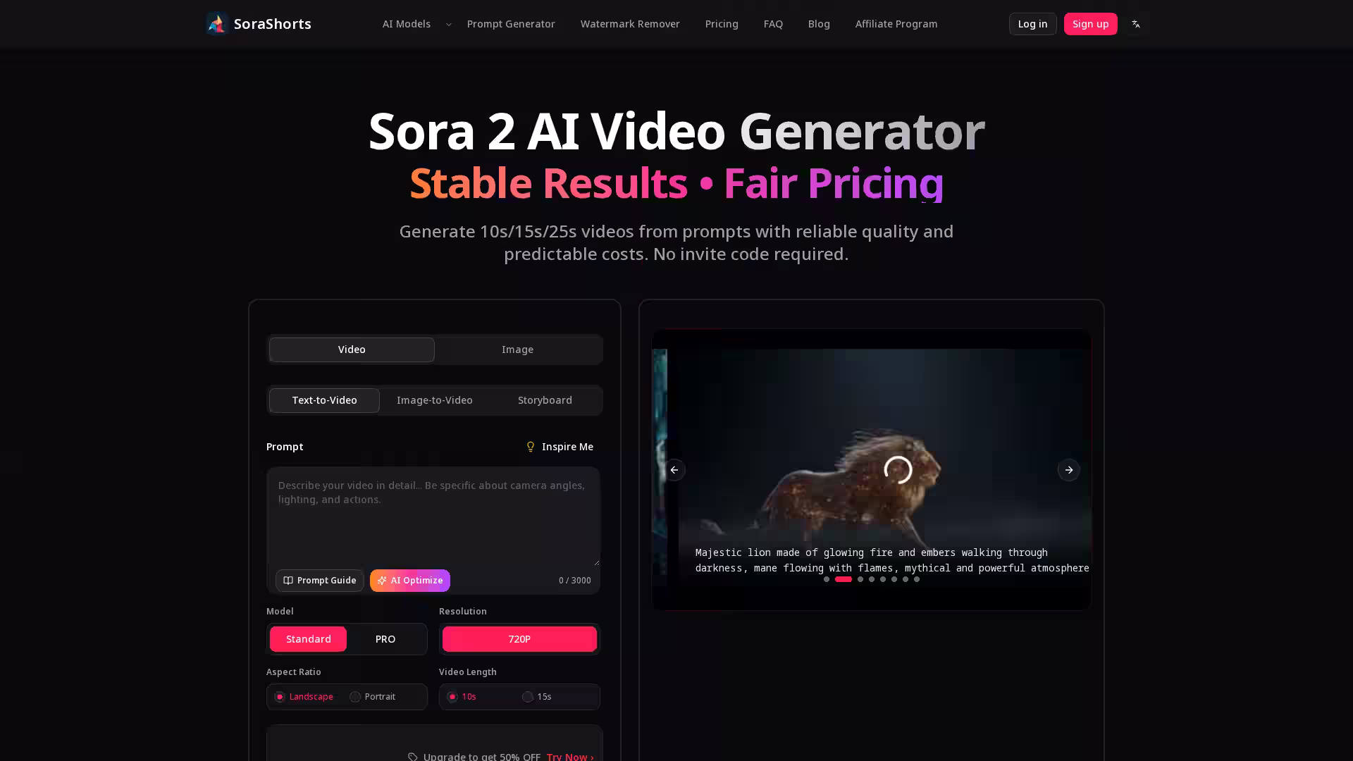 SoraShorts offers stable output, transparent pricing, prompt optimization, and additional features like watermark removal optimized for creators and marketers.