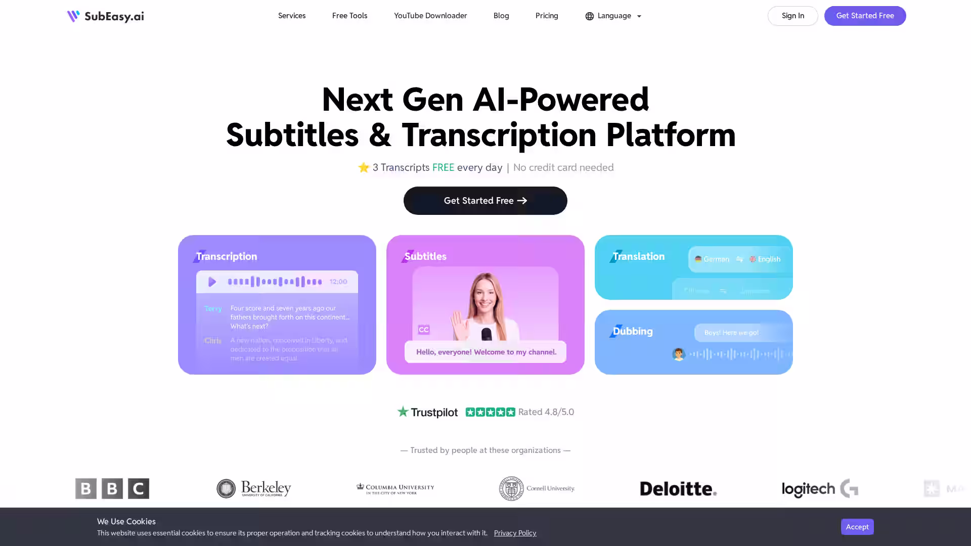 The platform offers three free daily transcripts with no credit card required, supporting a broad range of formats and export options that suit modern digital workflows. Whether creating subtitles for YouTube videos, generating meeting transcripts, or translating content for global audiences, SubEasy integrates AI technology to reduce manual effort and improve quality.