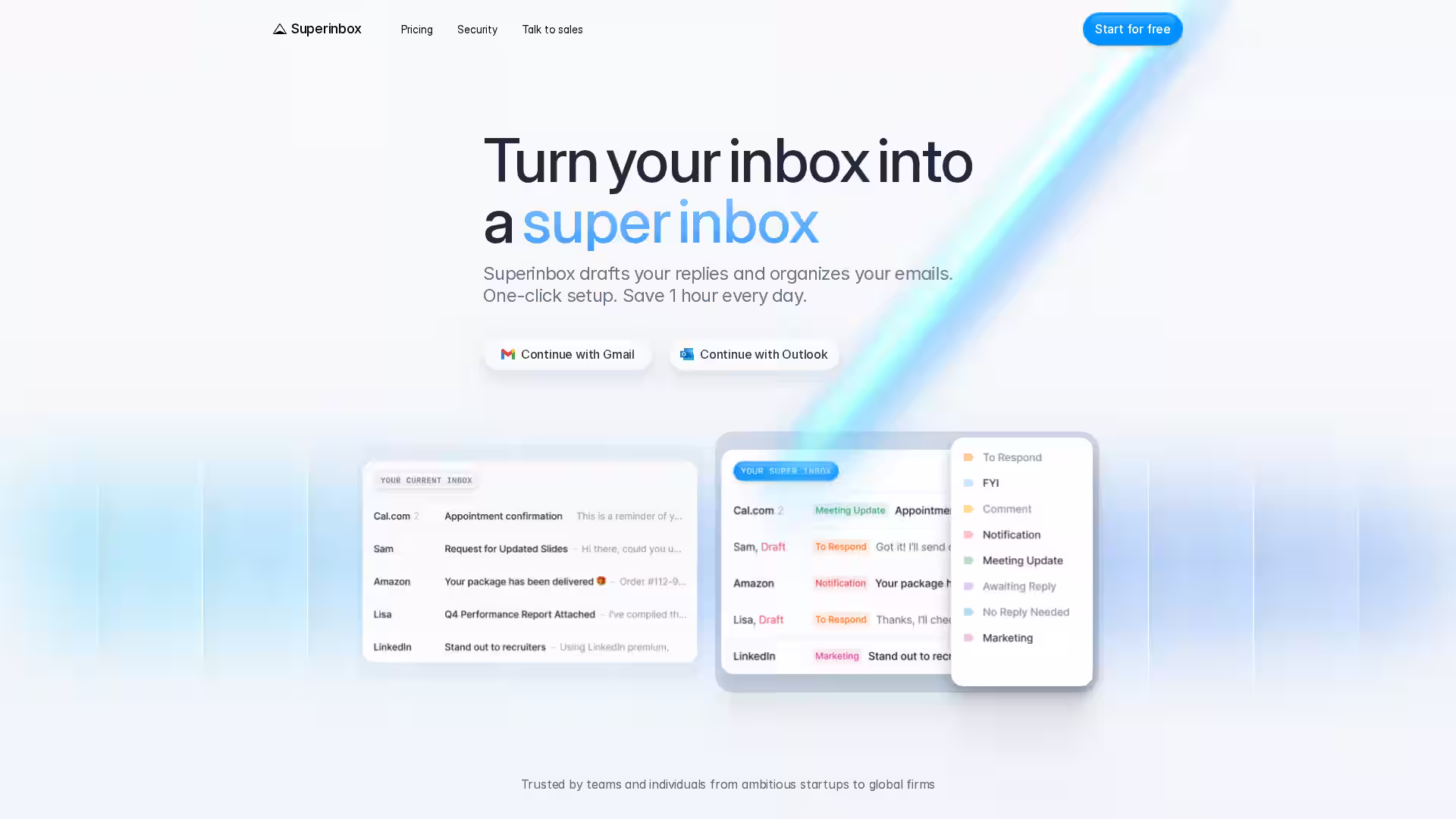 Superinbox drafts replies and auto-organizes Gmail & Outlook emails, saving you 1 hour daily with AI-powered inbox management.