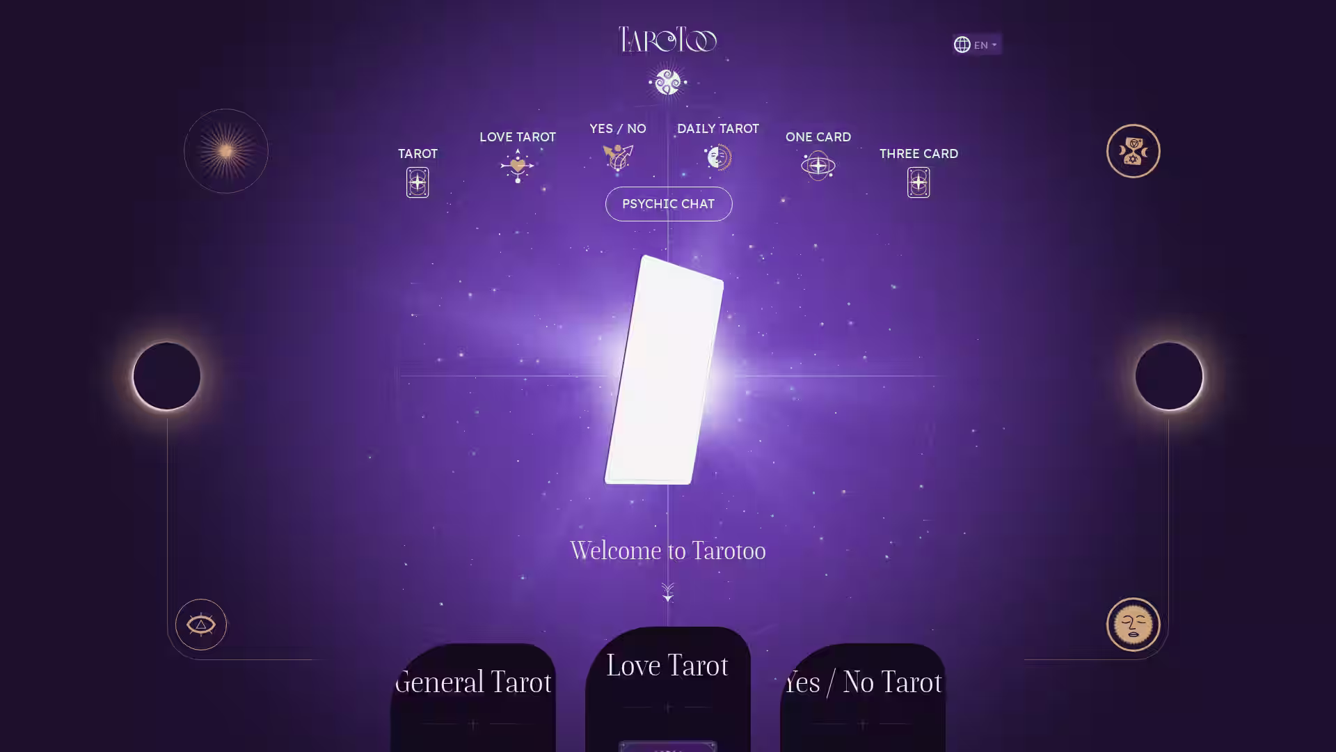 Through visually rich and emotionally resonant animated cards, Tarotoo creates immersive experiences that honor traditional esoteric archetypes while adding artistic depth. The site offers multiple reading types, including General Tarot spreads, Love Tarot, Yes/No readings, Daily Tarot draws, and 1-card or 3-card spreads. In addition, Tarotoo features a unique AI-powered "Psychic Chat" that lets you ask spiritual, esoteric, tarot, and astrology-related questions for instant AI-generated responses.