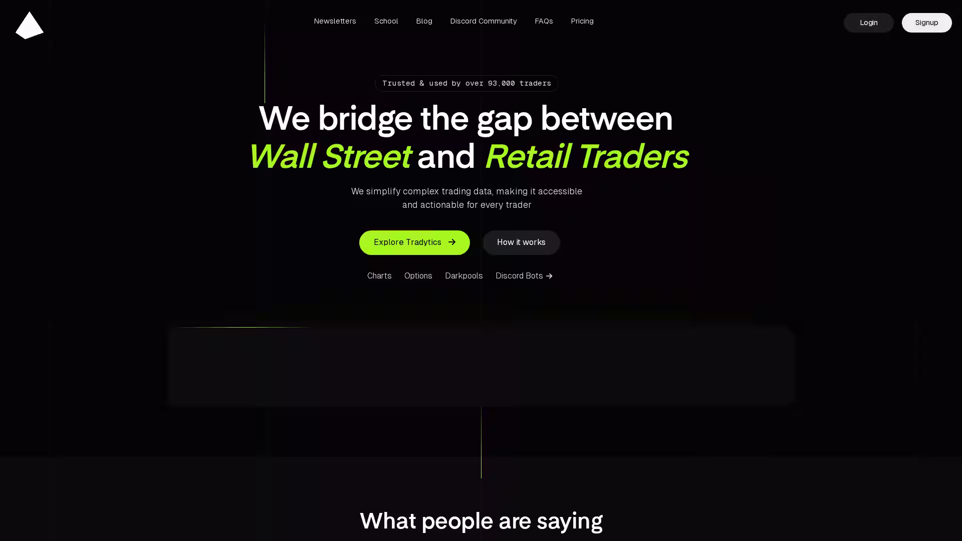 Tradytics empowers retail traders by bridging the gap with Wall Street-grade data and AI tools, fostering both profit potential and community-driven success.