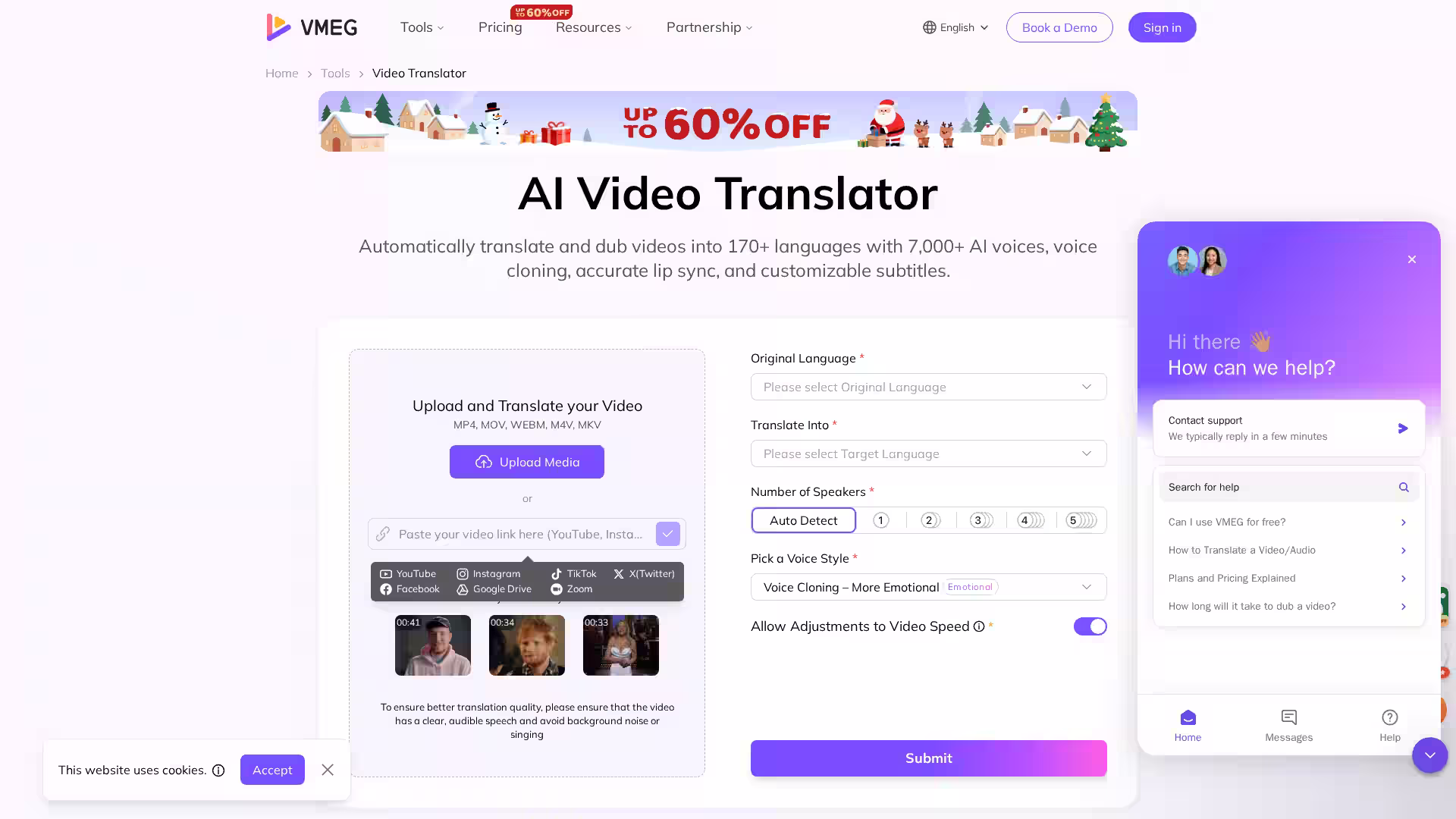Multi-language Support: Translates video content into over 100 languages and dialects, providing extensive reach.